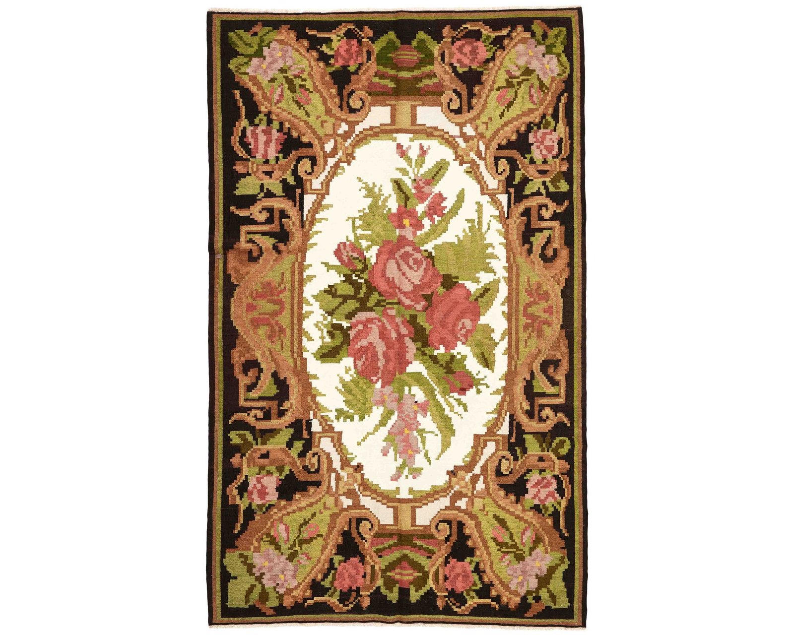 Rose Kelim-mattorna är handvävda ullmattor från Moldavien och norra Turkiet. De är tillverkade med en särskild slätvävsteknik som ger mattorna en tunn, filtliknande yta. Rose Kelim-mattorna är ofta äldre och relativt sällsynta, och kännetecknas av rika blommönster i starka färger mot en mörk bakgrund. Oanvänd.