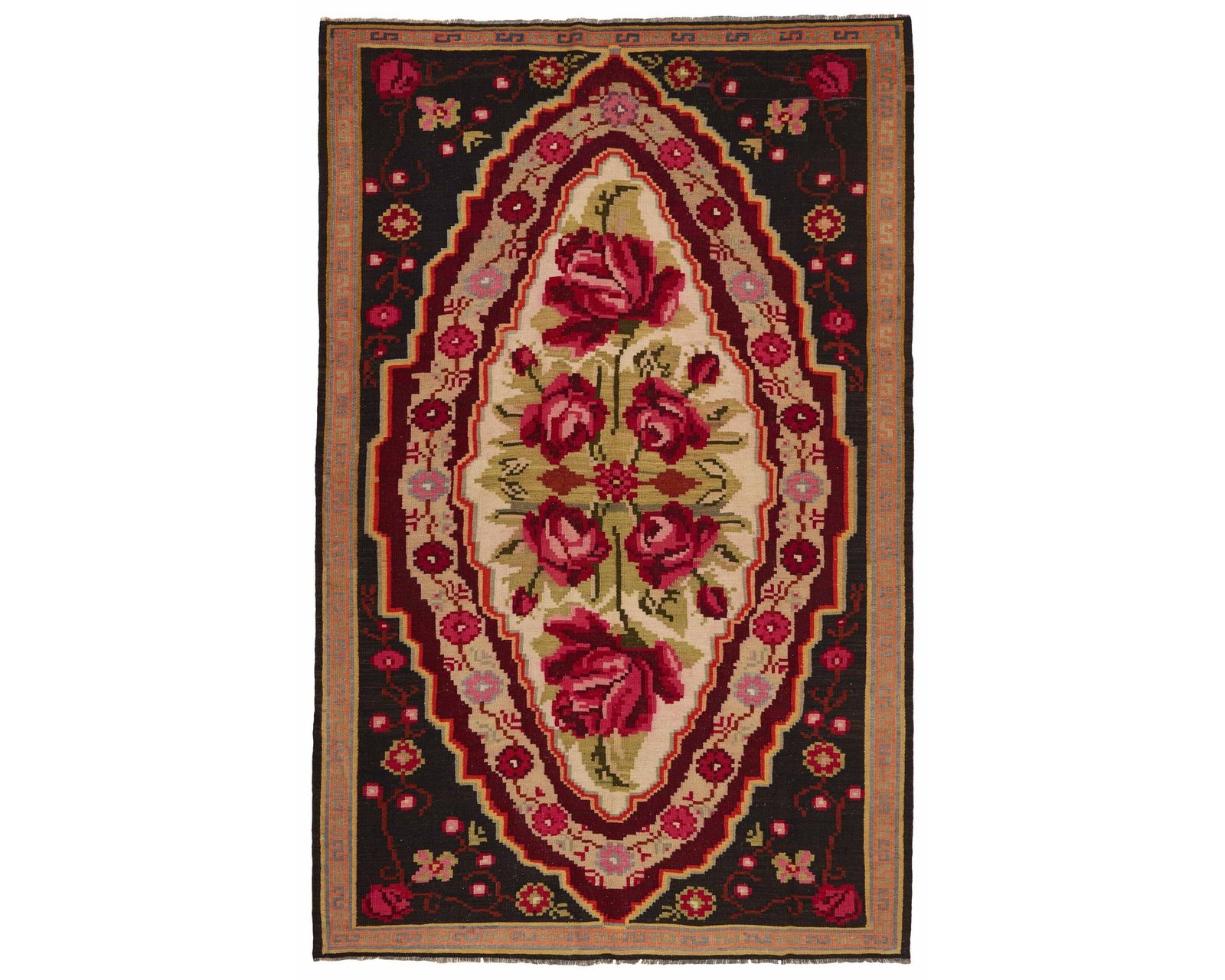 Rose Kelim-mattorna är handvävda ullmattor från Moldavien och norra Turkiet. De är tillverkade med en särskild slätvävsteknik som ger mattorna en tunn, filtliknande yta. Rose Kelim-mattorna är ofta äldre och relativt sällsynta, och kännetecknas av rika blommönster i starka färger mot en mörk bakgrund. Oanvänd.
