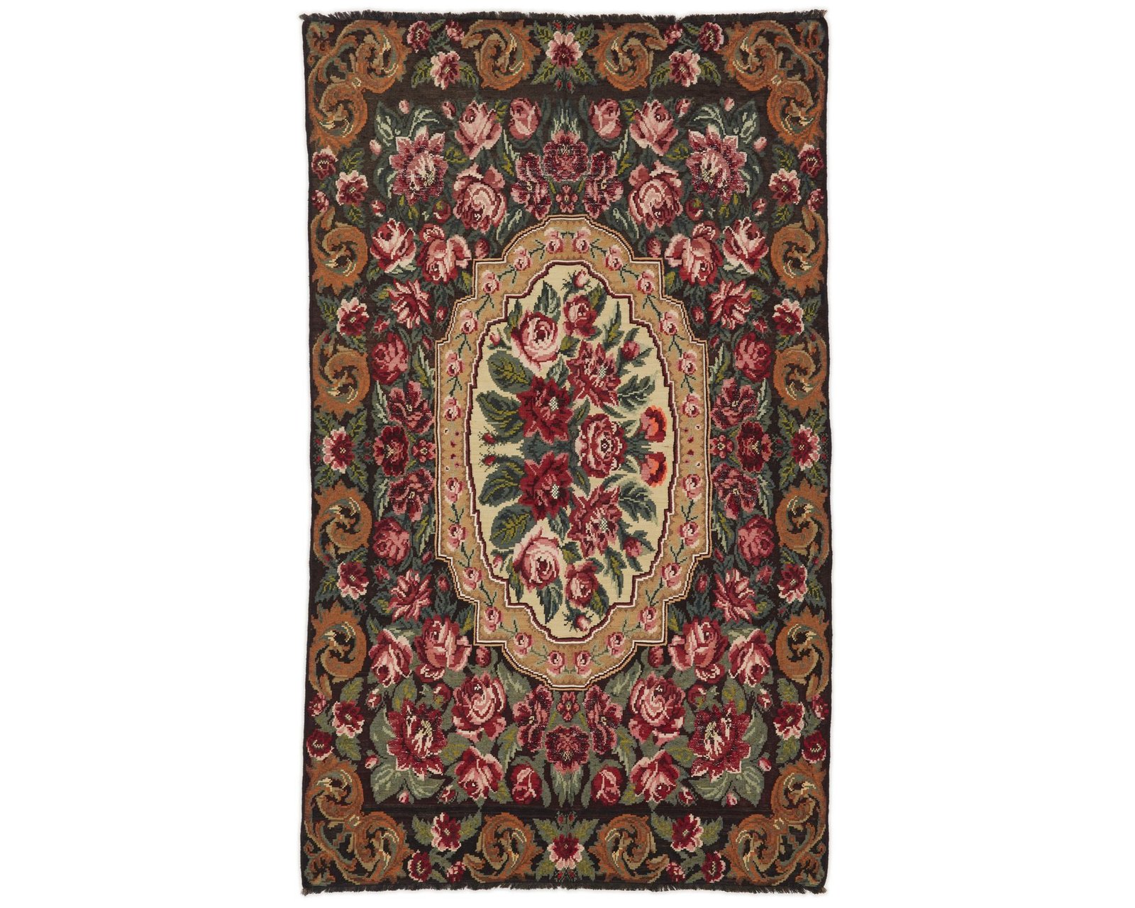 Rose Kelim-mattorna är handvävda ullmattor från Moldavien och norra Turkiet. De är tillverkade med en särskild slätvävsteknik som ger mattorna en tunn, filtliknande yta. Rose Kelim-mattorna är ofta äldre och relativt sällsynta, och kännetecknas av rika blommönster i starka färger mot en mörk bakgrund. Oanvänd.