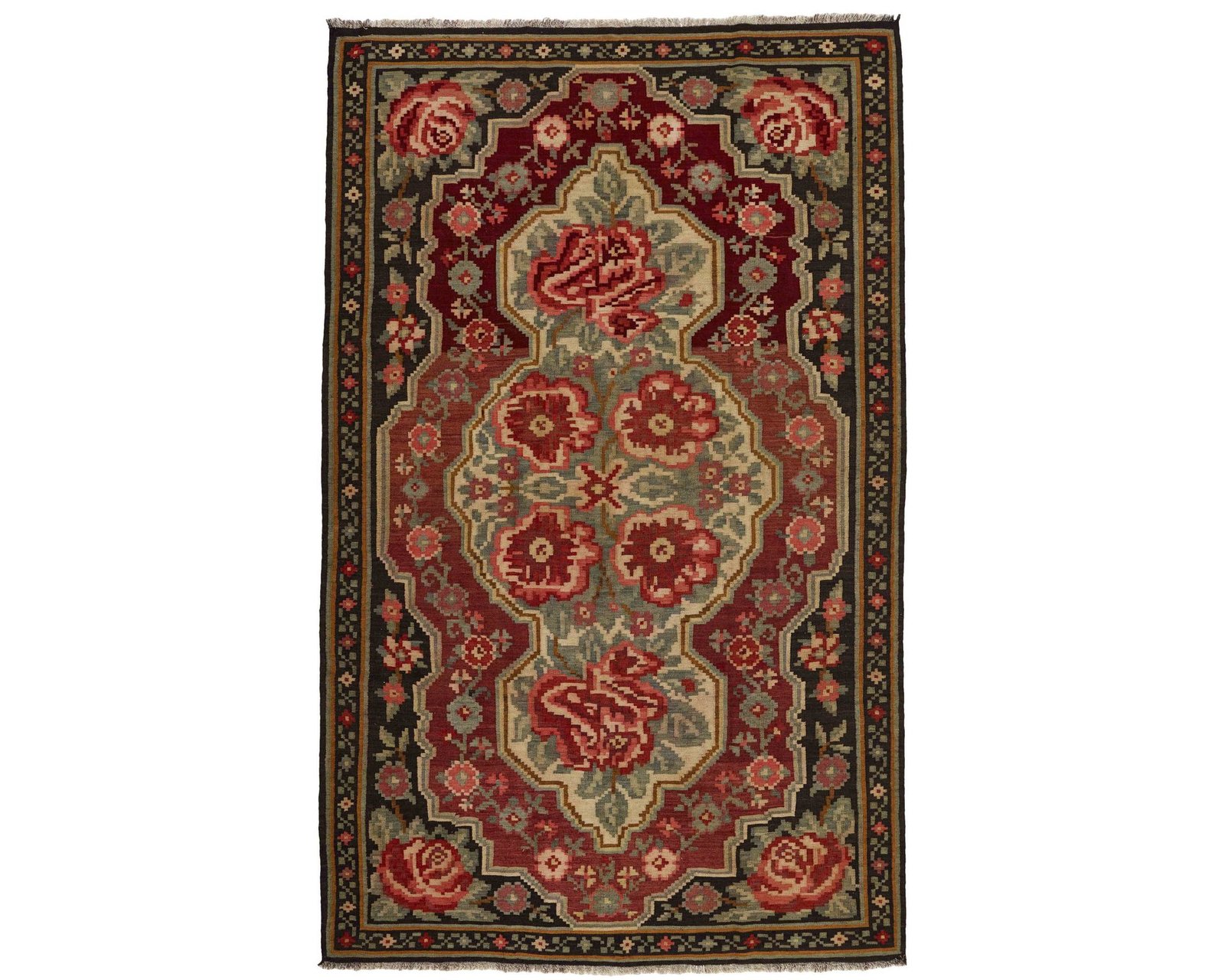 Rose Kelim-mattorna är handvävda ullmattor från Moldavien och norra Turkiet. De är tillverkade med en särskild slätvävsteknik som ger mattorna en tunn, filtliknande yta. Rose Kelim-mattorna är ofta äldre och relativt sällsynta, och kännetecknas av rika blommönster i starka färger mot en mörk bakgrund. Oanvänd.