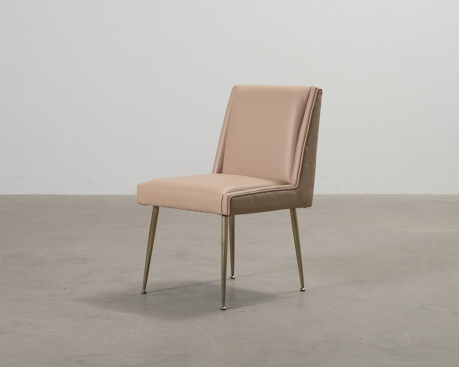 Den eleganta Art-stolen från Ruth & Joanna erbjuder både tidlös stil och utmärkt komfort. Mässingsfärgade ben och klädsel i beige läder fulländar stolens eleganta utseende. Små ytdefekter i klädseln. Helhetsintrycket är fint.