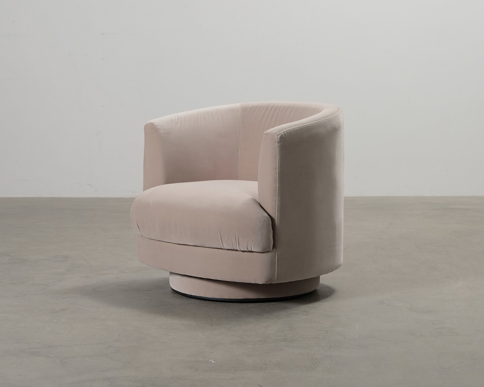 Ruth & Joannas Cleo-fåtölj är inspirerad av 1970-talet. Fåtöljens loungeinspirerade atmosfär skapas av dess eleganta silhuett, vackra sammetsklädsel och praktiska egenskaper eftersom Cleo-fåtöljen har en vridbar sits. Dessa egenskaper gör fåtöljen till det perfekta valet för offentliga utrymmen, hotell- och kontorslobbyer, men också för vardagsrum i privata hem. Fåtöljens klädsel har fördjupningar och lätt slitage på yttersidorna, framkanten och ryggstödet på sitsen.