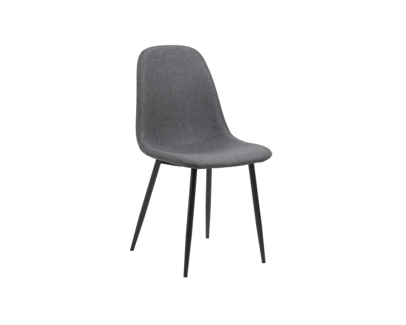 En stilren, bekväm och tidlös matstol med grå tygklädd sits och svarta metallben. Säljs som ett set om 4.