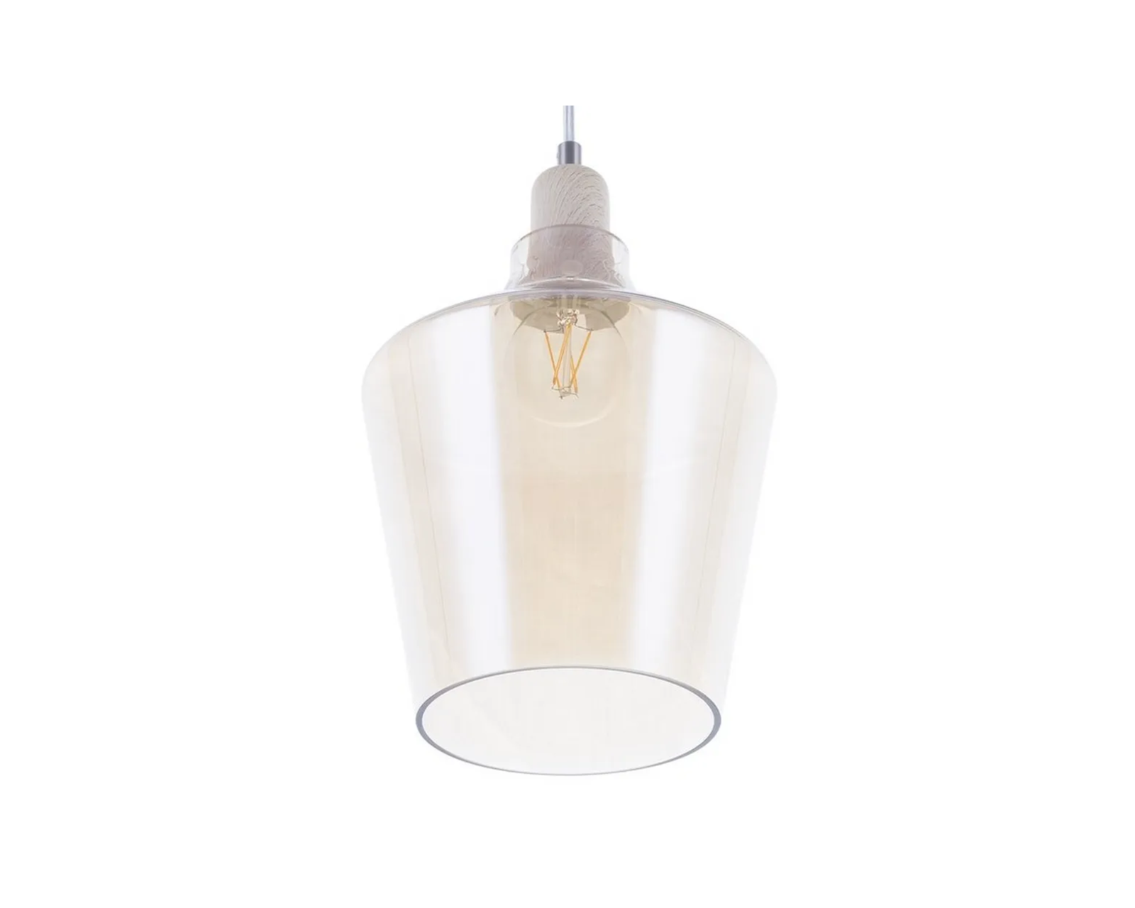 Elegant taklampa för matsalar, vardagsrum eller kök. Lampskärmen är tillverkad av tonat glas, vilket ger ett varmt ljus.