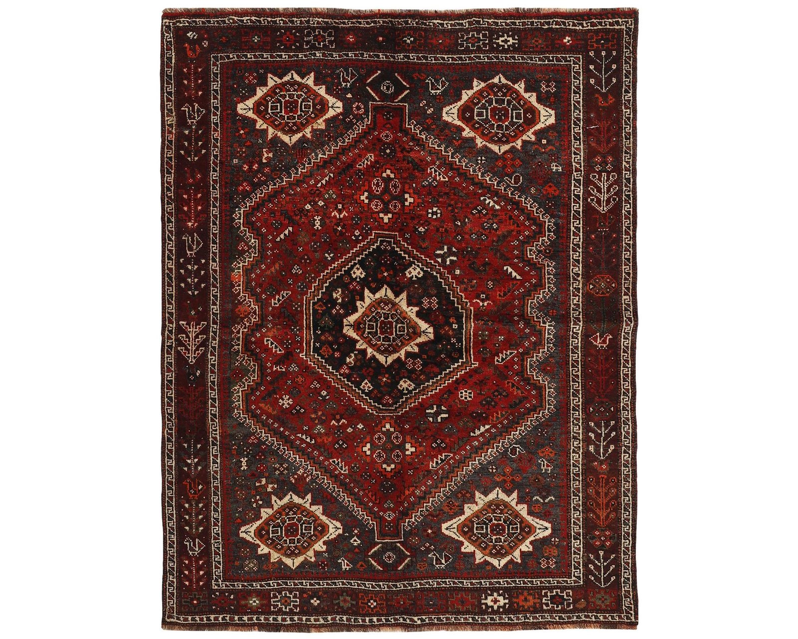 Shiraz-mattor är uppkallade efter en stad vid foten av Zagrosbergen, och mattorna vävs i små städer och byar runt omkring. Lokala stammar, såsom Kashghai, tillverkar också mattorna. Shiraz-mattor är kända för sin djupa vinröda färg, kombinerad med mörkblå och små vita och gröna områden. Ullen är mjuk och mörkare, ibland blandad med gethår. Mönstren på mattorna är grova och geometriska, ofta identiska med Kashghai-mönster. Shiraz-mattor kan också vara dekorerade med små geometriska fågel- och djurmönster. Oanvänd.