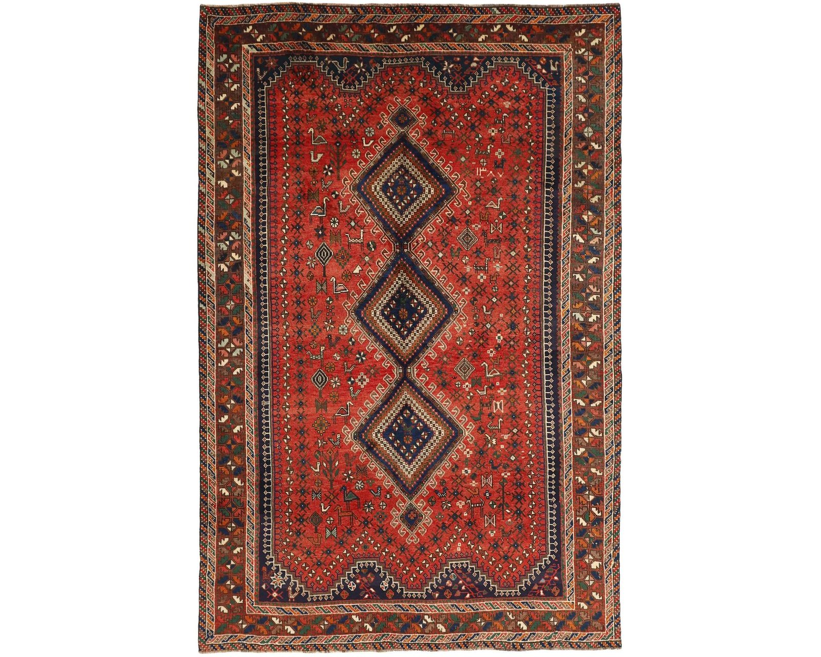 Shiraz-mattor är uppkallade efter en stad vid foten av Zagrosbergen, och mattorna vävs i små städer och byar runt omkring. Lokala stammar, såsom Kashghai, tillverkar också mattorna. Shiraz-mattor är kända för sin djupa vinröda färg, kombinerad med mörkblå och små vita och gröna områden. Ullen är mjuk och mörkare, ibland blandad med gethår. Mönstren på mattorna är grova och geometriska, ofta identiska med Kashghai-mönster. Shiraz-mattor kan också vara dekorerade med små geometriska fågel- och djurmönster. Oanvänd.