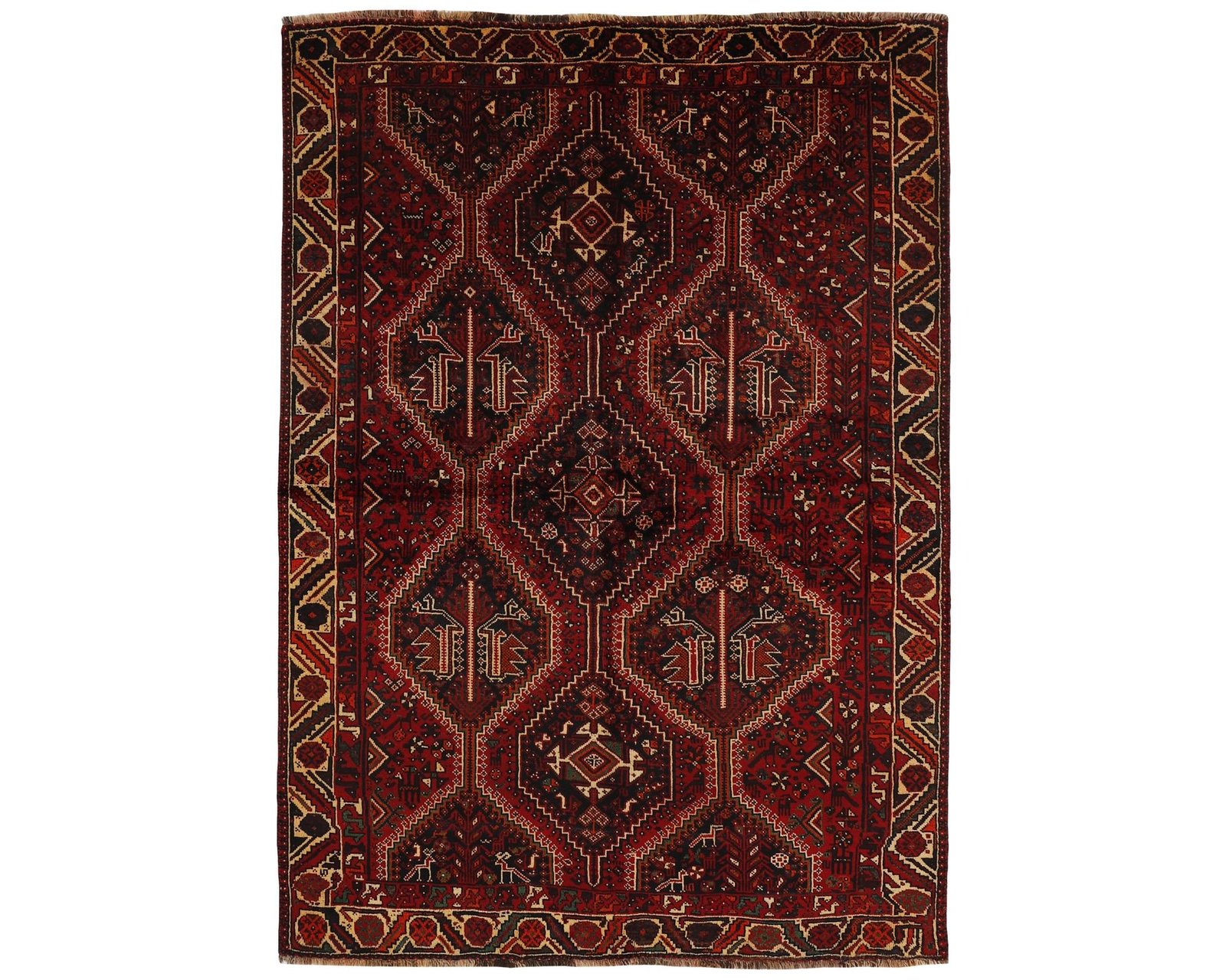 Shiraz-mattor är uppkallade efter en stad vid foten av Zagrosbergen, och mattorna vävs i små städer och byar runt omkring. Lokala stammar, såsom Kashghai, tillverkar också mattorna. Shiraz-mattor är kända för sin djupa vinröda färg, kombinerad med mörkblå och små vita och gröna områden. Ullen är mjuk och mörkare, ibland blandad med gethår. Mönstren på mattorna är grova och geometriska, ofta identiska med Kashghai-mönster. Shiraz-mattor kan också vara dekorerade med små geometriska fågel- och djurmönster. Oanvänd.