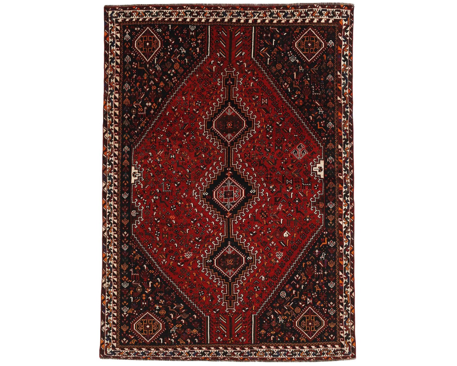 Shiraz-mattor är uppkallade efter en stad vid foten av Zagrosbergen, och mattorna vävs i små städer och byar runt omkring. Lokala stammar, såsom Kashghai, tillverkar också mattorna. Shiraz-mattor är kända för sin djupa vinröda färg, kombinerad med mörkblå och små vita och gröna områden. Ullen är mjuk och mörkare, ibland blandad med gethår. Mönstren på mattorna är grova och geometriska, ofta identiska med Kashghai-mönster. Shiraz-mattor kan också vara dekorerade med små geometriska fågel- och djurmönster. Oanvänd.