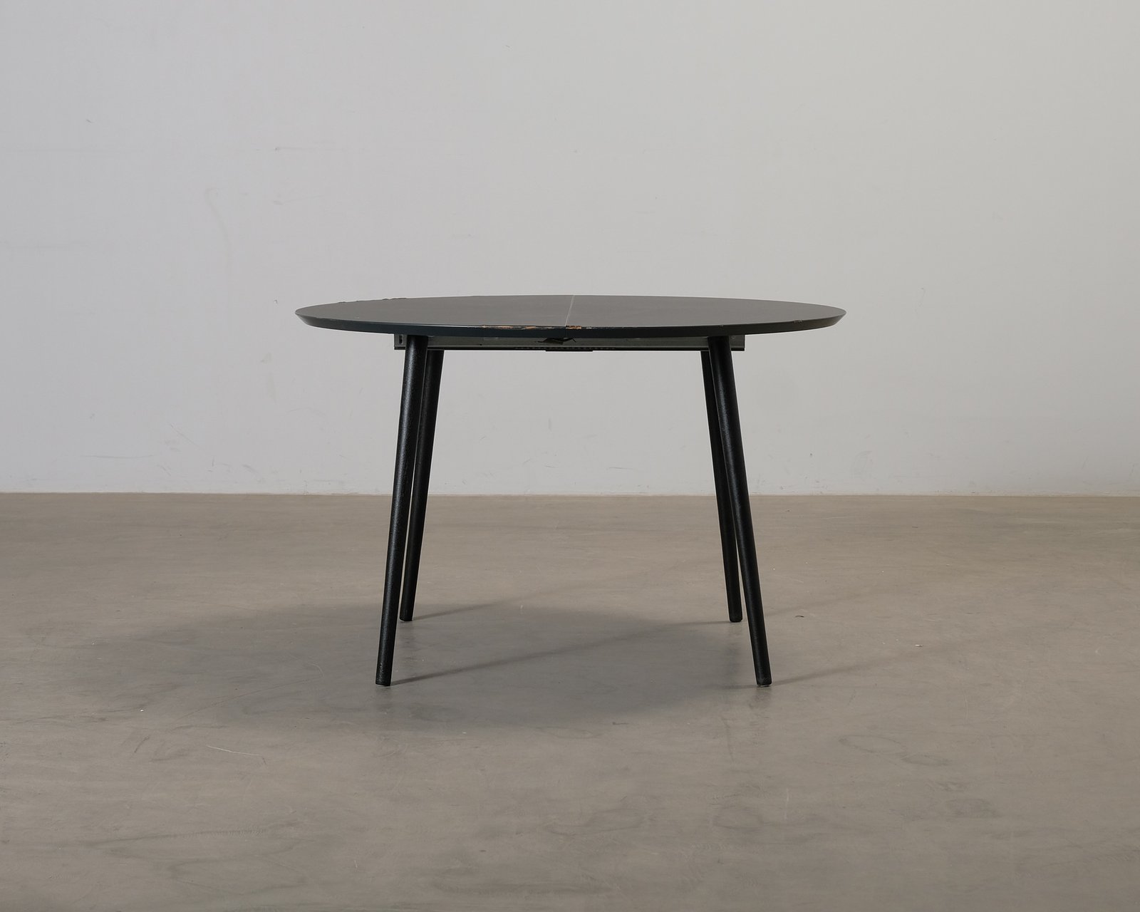 Sofacompany’s Amelia är ett funktionellt och kompakt matbord. Dess smala ben kombineras med en rund bordsskiva med yta av Forbo-linoleum. Vackra detaljer och en mjukt rundad design gör matbordet Amelia till en tidlös och elegant möbel för ditt hem. Bucklor och repor. Bordet levereras inte med någon förlängningsskiva.
