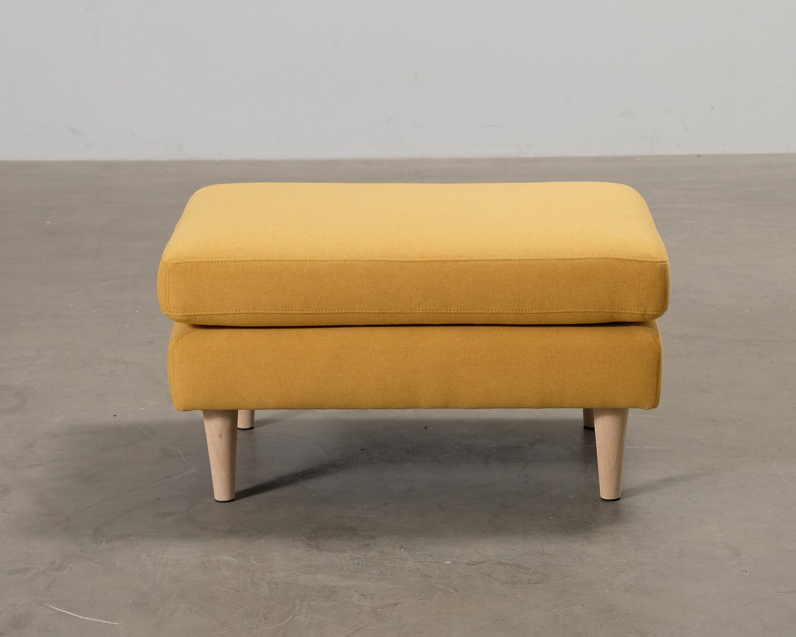 Sofacompanys Astha fotpall har en klassisk skandinavisk design. Pallen har en gul Sunday Curry -tygklädsel och ben av ek. Kombinera pallen med en soffa eller använd den som en extra sittplats, fotstöd eller soffbord. Astha är designad av Cathrine Rudolph. Oanvänd