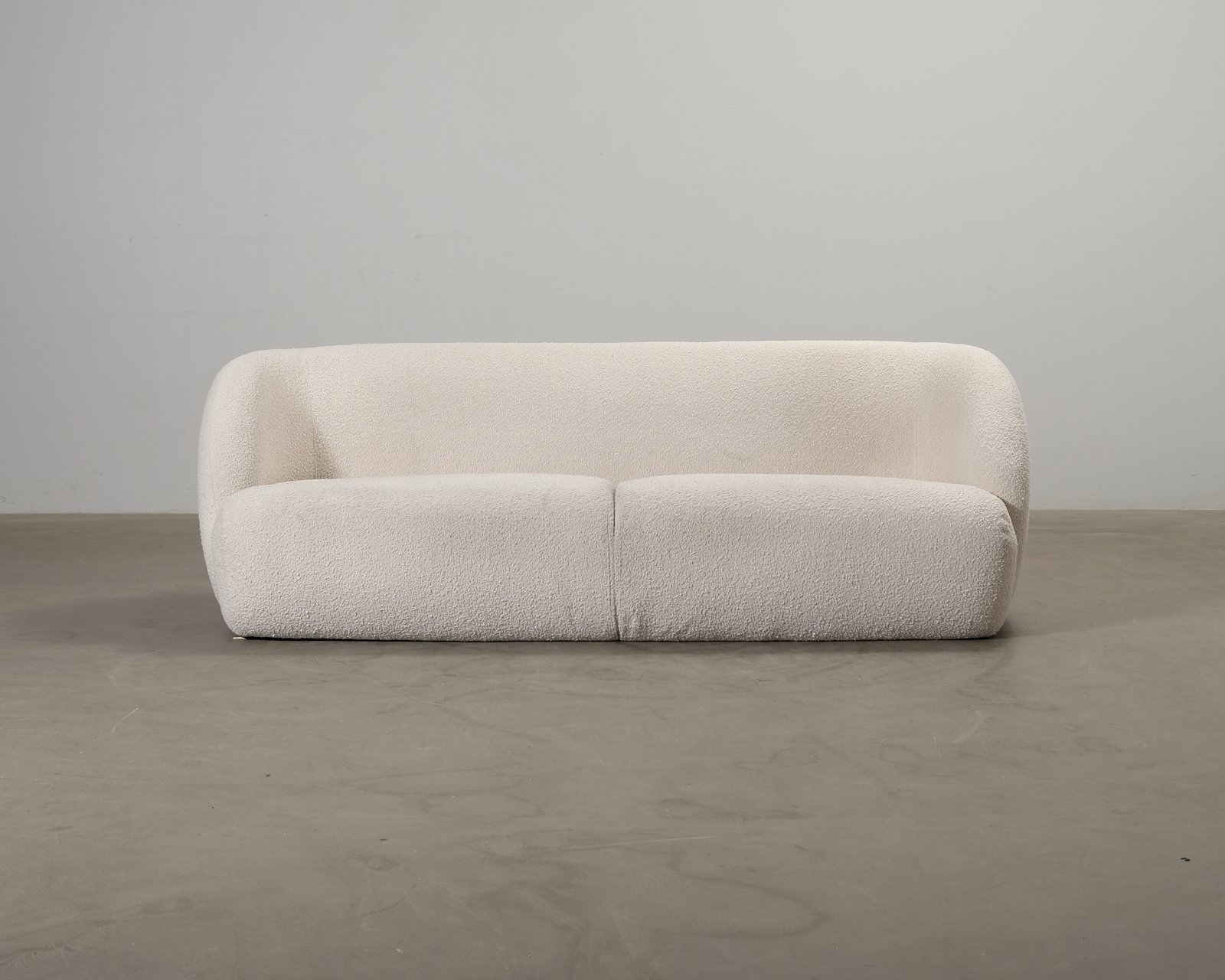 Sofacompanys Paula är designad enligt de hetaste trenderna! Soffans mjuka linjer och sköna tygklädsel ger Paula ett inbjudande uttryck och avslappnande loungekänsla. Soffan är designad av Line Nevers Krabbenhøft. Klädselns färg Maya Cream. Det finns ett litet mörkt märke på det vänstra armstödet. Helhetsintrycket är fint.