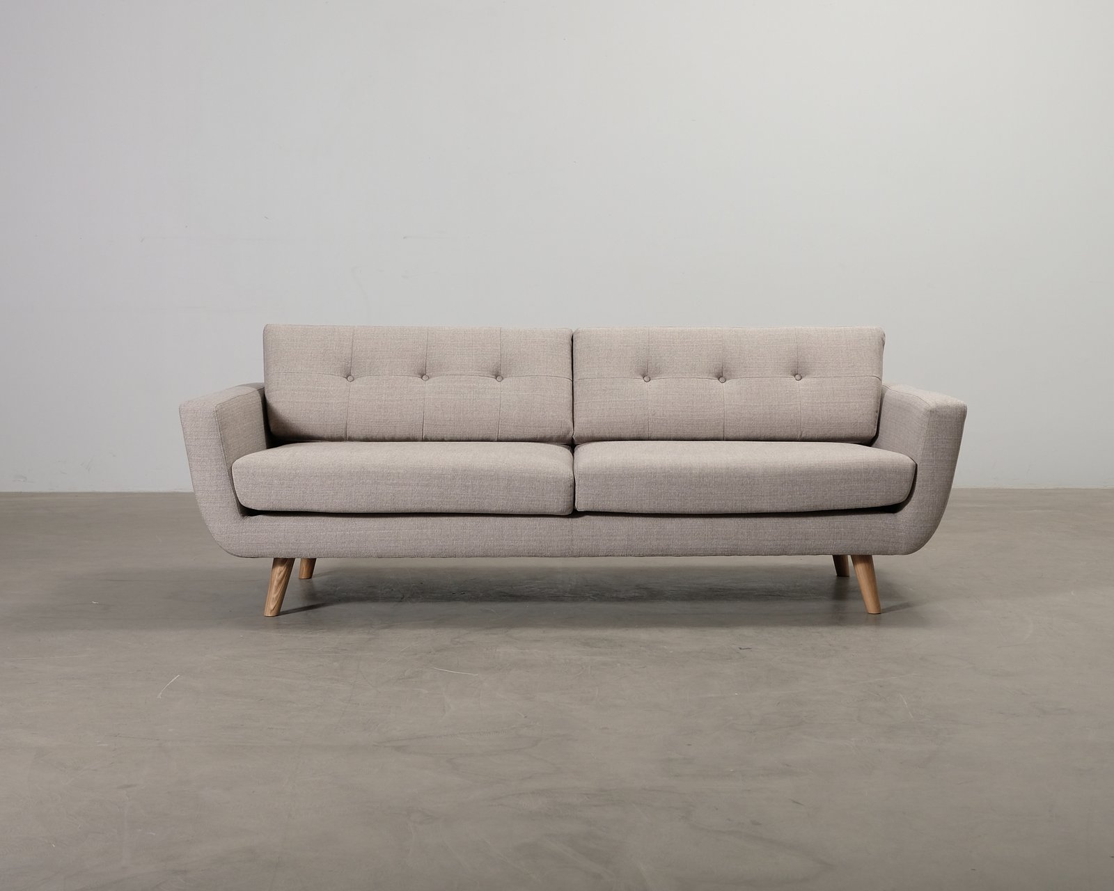 Vera är en klassisk soffa inspirerad av 50-talet med vinklade armstöd, solida träben och klädda knappar i ryggen. Den avskalade men inte minst iögonfallande designen har stort fokus på sittkomforten. Klädselns färg Vega Sand Dune. Helhetsintrycket är mycket fint. Hål i basmaterialet. Buckla i armstödet.