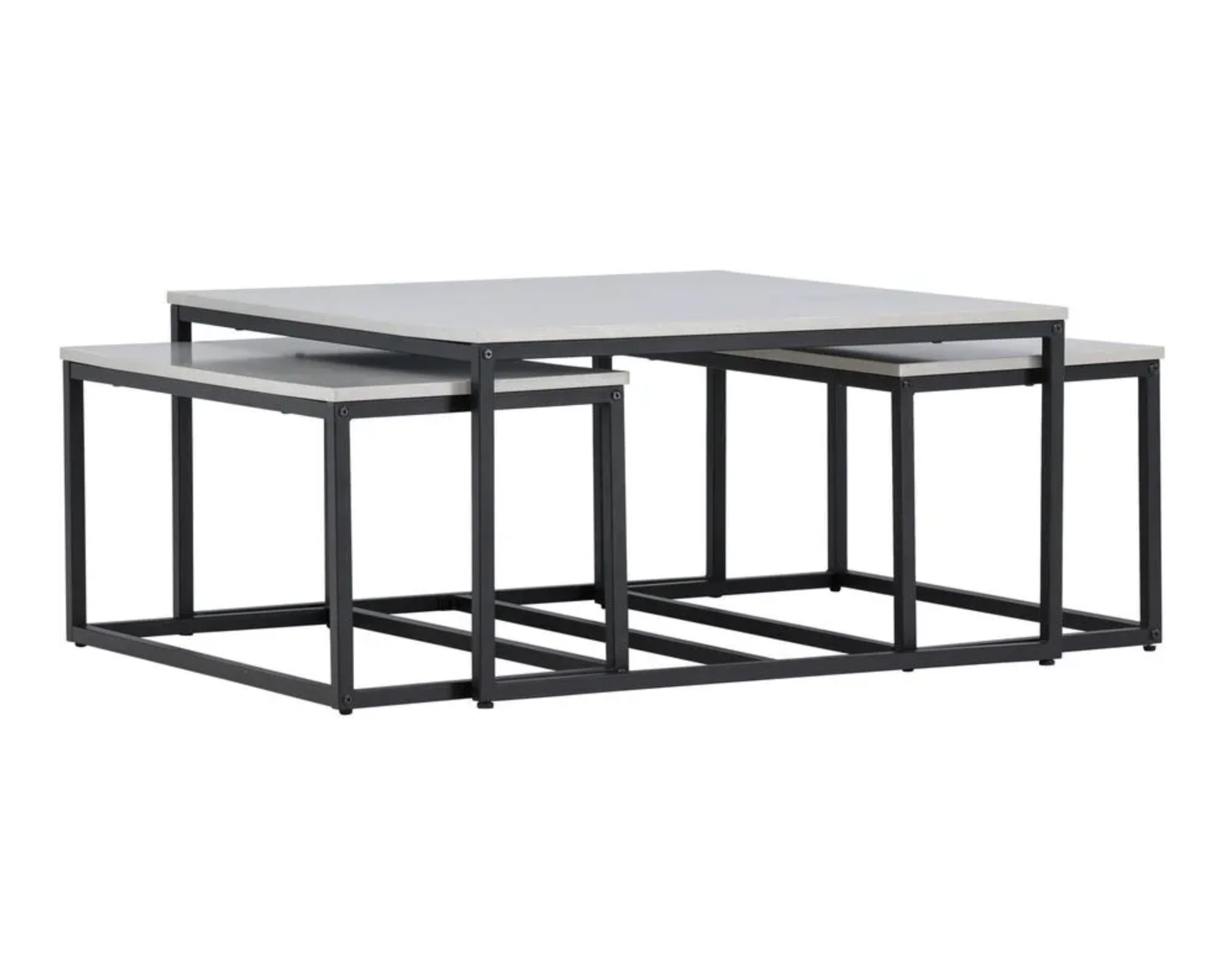 Solna-soffbordet kombinerar stilren design med praktisk funktion. Bordet består av ett stort bord (80 × 80 cm) och två mindre bord (73 × 38 cm) som smidigt kan skjutas under det stora bordet när de inte används. Bordsskivan är tillverkad av grå MDF och benen av svart stål, vilket skapar en modern och elegant kontrast. Solna erbjuder en flexibel lösning för olika utrymmen och passar bra i skandinavisk inredning.