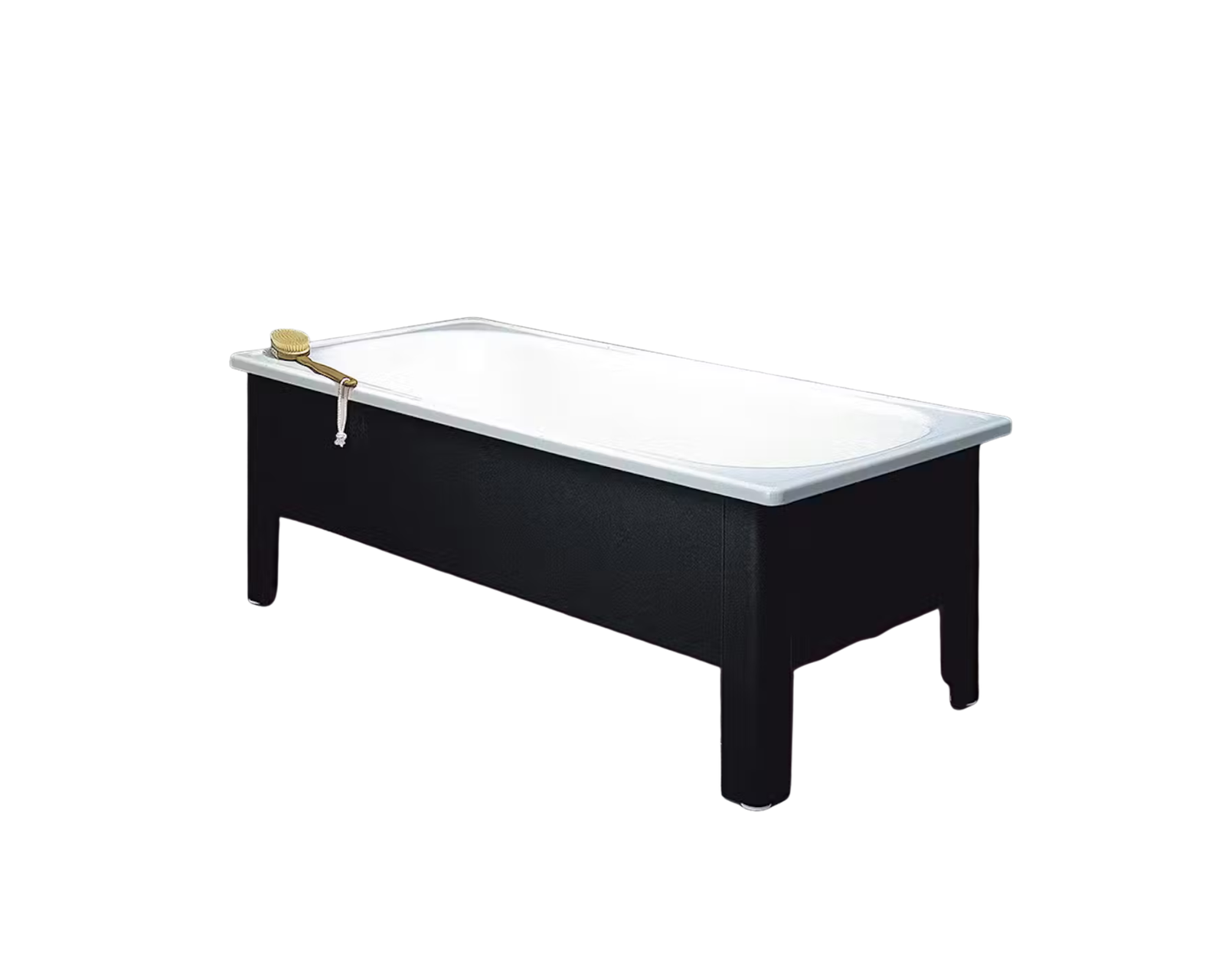 Emaljerat badkar från Svedbergs. Badkaret har justerbara ben, vilket gör det lämpligt för alla golvtyper. Bottenventil och avloppsrör ingår. Betydande repa på badkaret.