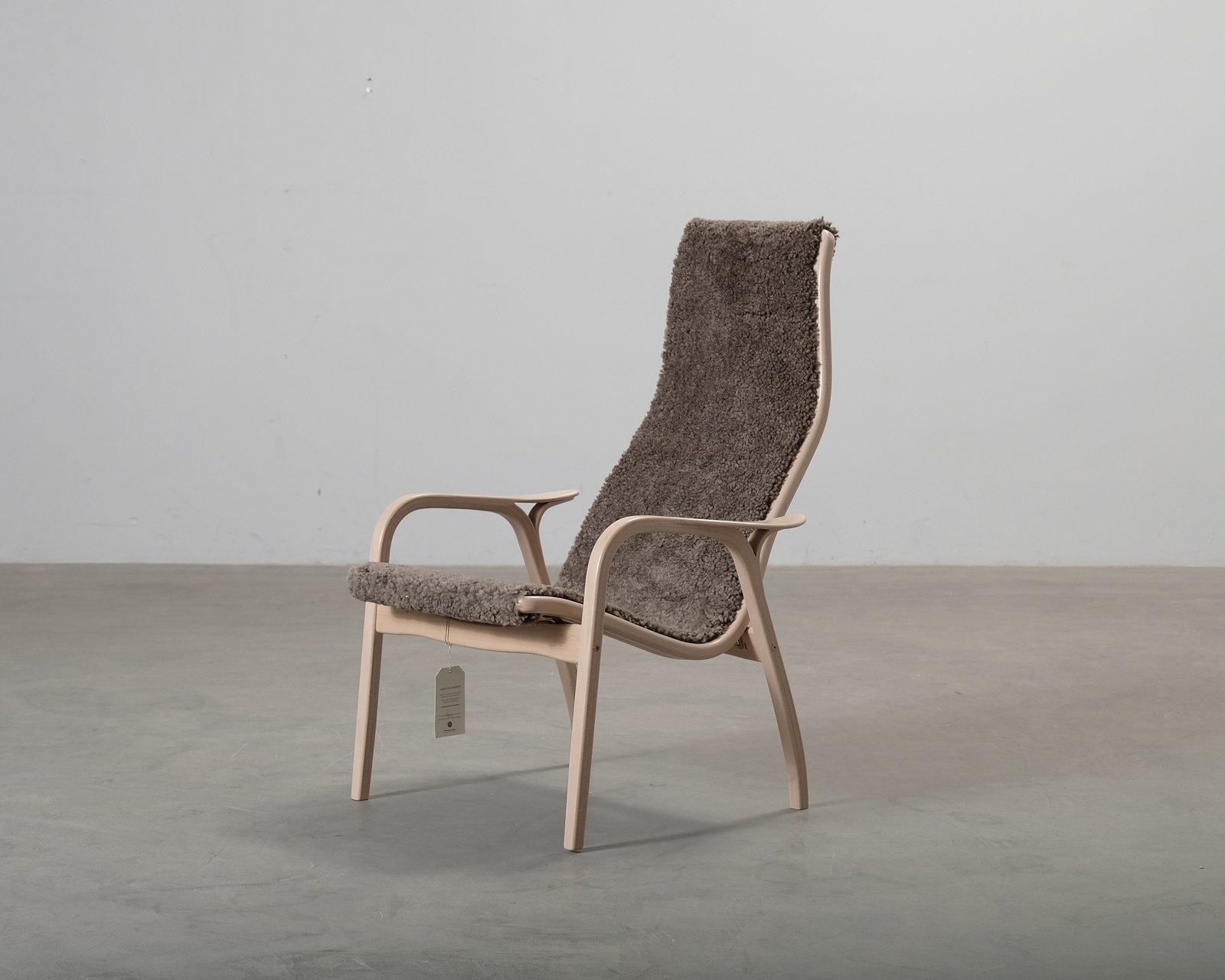 Lamino-fåtöljen, tillverkad av det svenska märket Swedese, är en riktig klassiker inom skandinavisk design som passar i alla hem. Fåtöljen är designad av Yngve Ekström år 1956. Stommen är i bok och den är klädd med brunt ”Sahara”-fårskinn. Små spår av användning. Helhetsintrycket är fint.