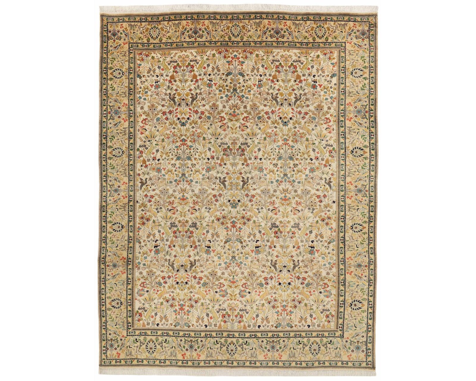 Tabriz 40-mattorna är handknutna ullmattor med varp i bomull. Med en knuttäthet på cirka 400 000 knutar per kvadratmeter har ytan en fin detaljrikedom och tydlig definition, vilket speglar den höga kvaliteten hos Tabriz-mattor. Mönstren består vanligtvis av Herati- eller Nagsheh-mönster i harmoniska, återhållsamma färgtoner. Oanvänd.