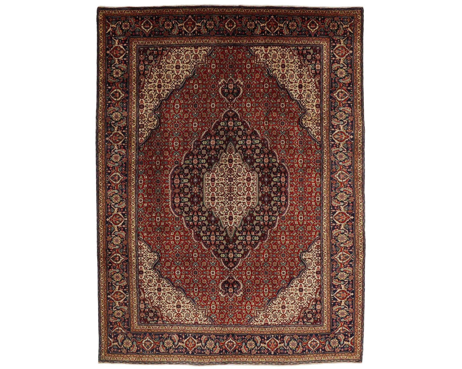 Tabriz-mattorna är handknutna med varp av bomull samt ulllugg, vilket ger mattorna en yta som är både slitstark och elegant. Mönstren sträcker sig från traditionella Herati-mönster till Nagsheh-kompositioner inspirerade av figurativa inslag från andra klassiska mattstilar. Färgskalan varierar med kvaliteten, där finare mattor uppvisar mer nyanserade och harmoniska toner. Knuttätheten ligger mellan 450 000 och 550 000 knutar per kvadratmeter. Oanvänd.
