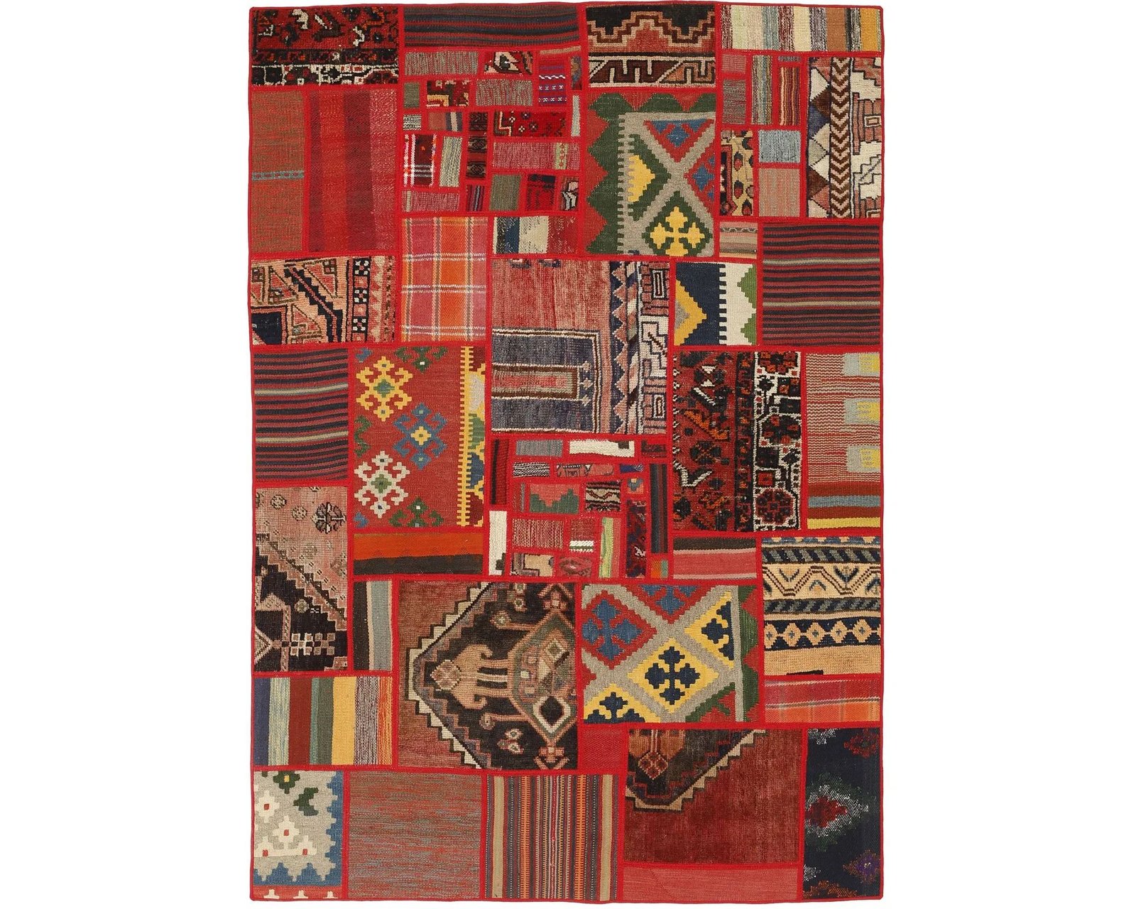 Tekkeh Kelim mattor tillverkas av bitar från gamla Kelim ullmattor. Bitarna sys ihop och slutligen fästs på ett bottenmaterial. Dessa mattor skapas alltså genom att återanvända befintligt material samtidigt som man skapar unika, lapptäckesliknande mattor av traditionella persiska textilier. Oanvänd.