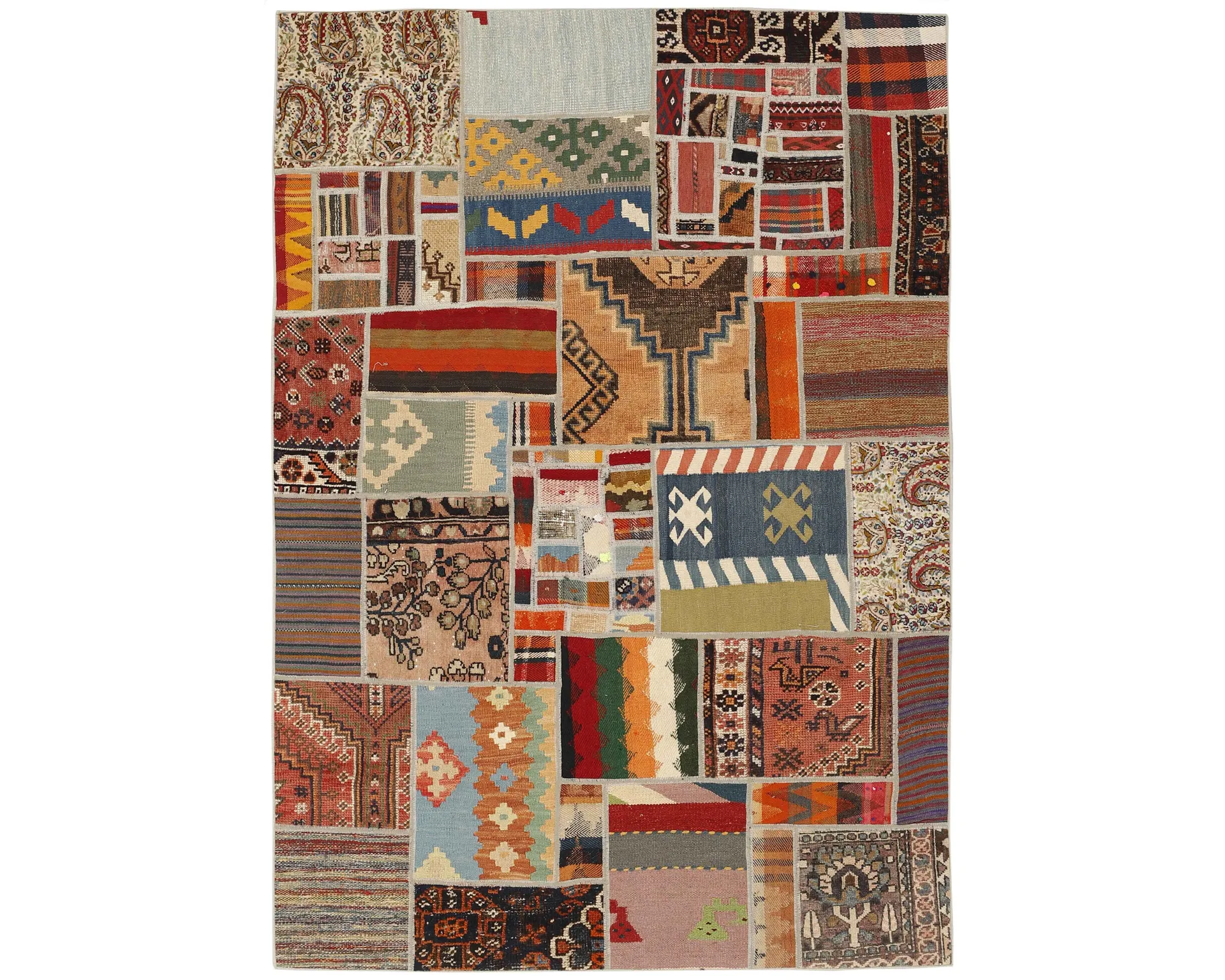 Tekkeh Kelim mattor tillverkas av bitar från gamla Kelim ullmattor. Bitarna sys ihop och slutligen fästs på ett bottenmaterial. Dessa mattor skapas alltså genom att återanvända befintligt material samtidigt som man skapar unika, lapptäckesliknande mattor av traditionella persiska textilier. Oanvänd.