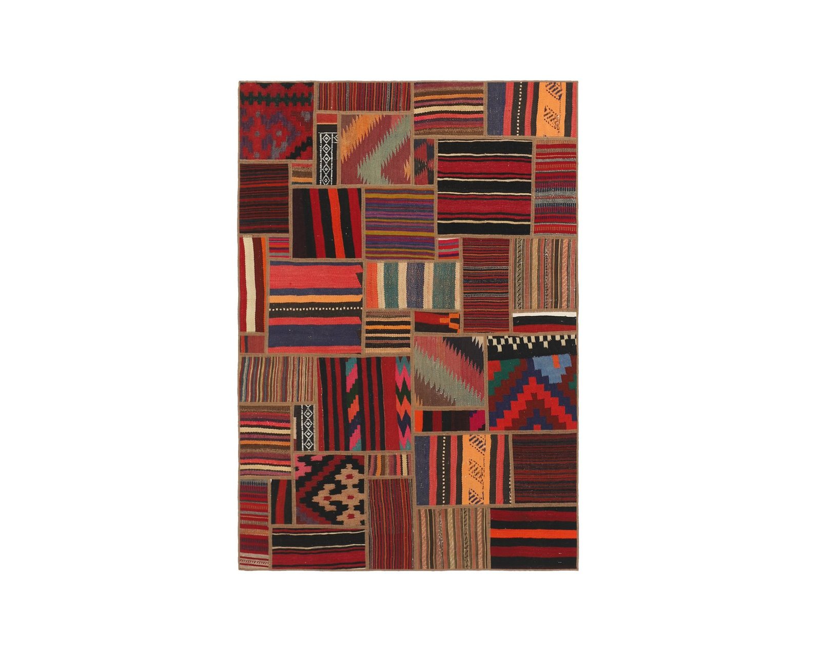 Tekkeh Kelim mattor tillverkas av bitar från gamla Kelim ullmattor. Bitarna sys ihop och slutligen fästs på ett bottenmaterial. Dessa mattor skapas alltså genom att återanvända befintligt material samtidigt som man skapar unika, lapptäckesliknande mattor av traditionella persiska textilier. Oanvänd.