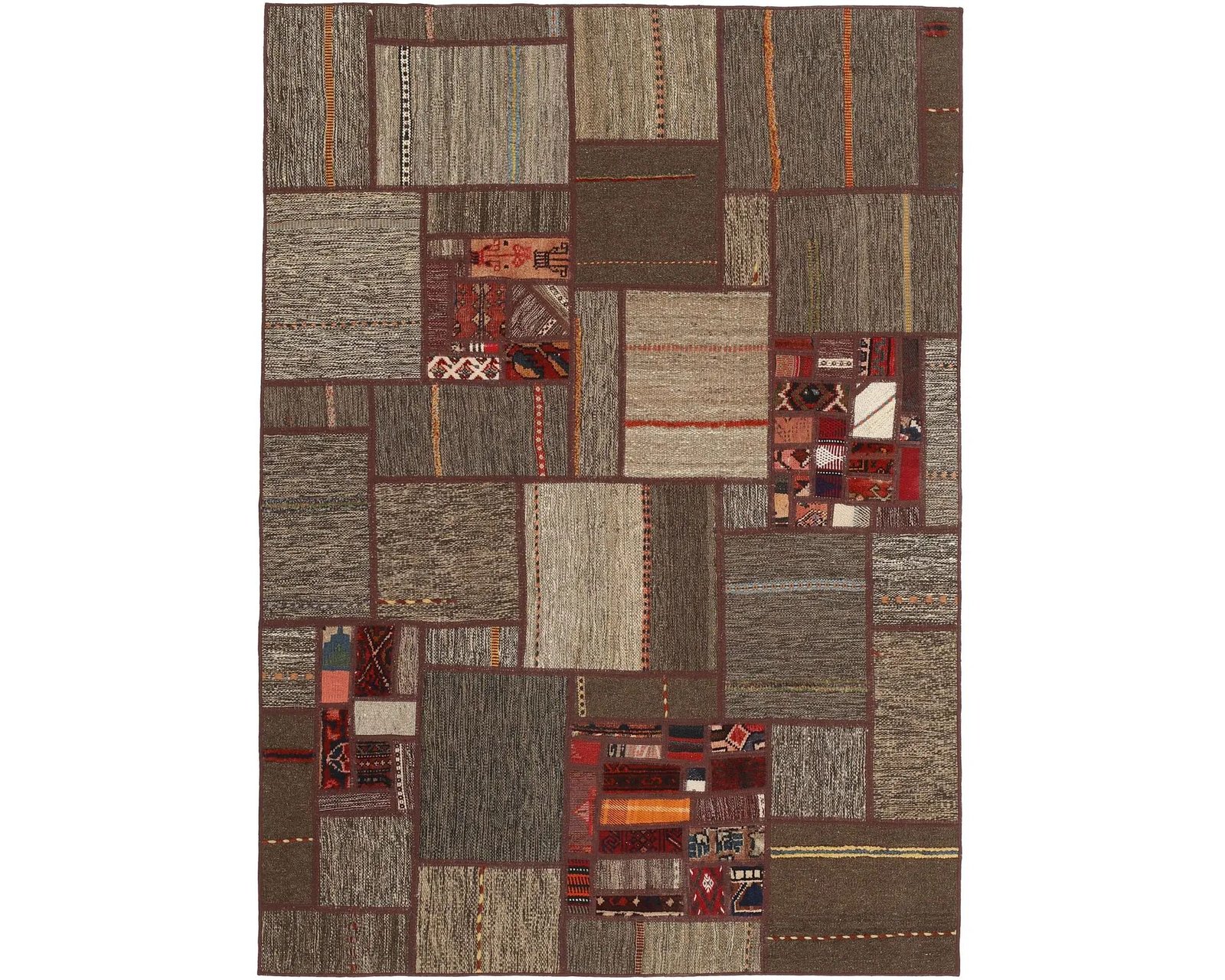 Tekkeh Kelim mattor tillverkas av bitar från gamla Kelim ullmattor. Bitarna sys ihop och slutligen fästs på ett bottenmaterial. Dessa mattor skapas alltså genom att återanvända befintligt material samtidigt som man skapar unika, lapptäckesliknande mattor av traditionella persiska textilier. Oanvänd.
