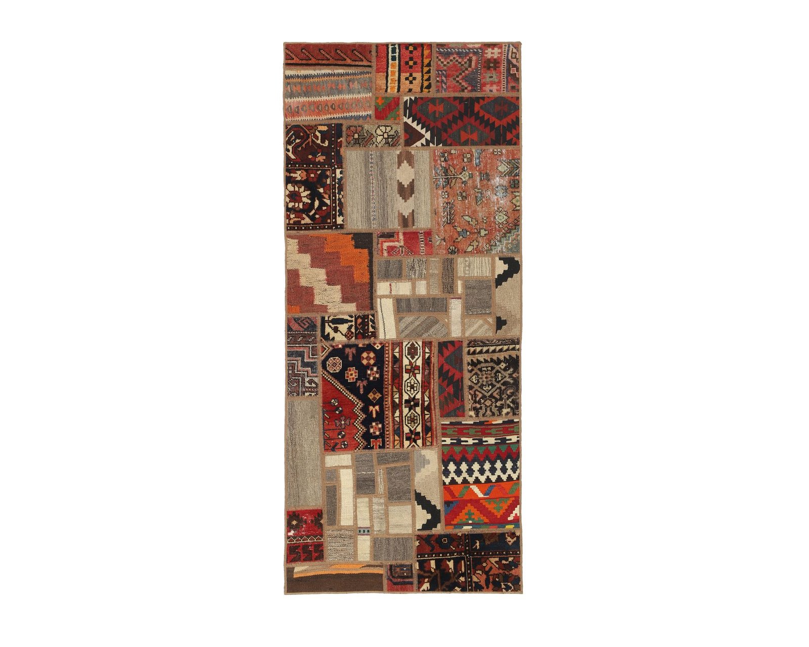 Tekkeh Kelim mattor tillverkas av bitar från gamla Kelim ullmattor. Bitarna sys ihop och slutligen fästs på ett bottenmaterial. Dessa mattor skapas alltså genom att återanvända befintligt material samtidigt som man skapar unika, lapptäckesliknande mattor av traditionella persiska textilier. Oanvänd.