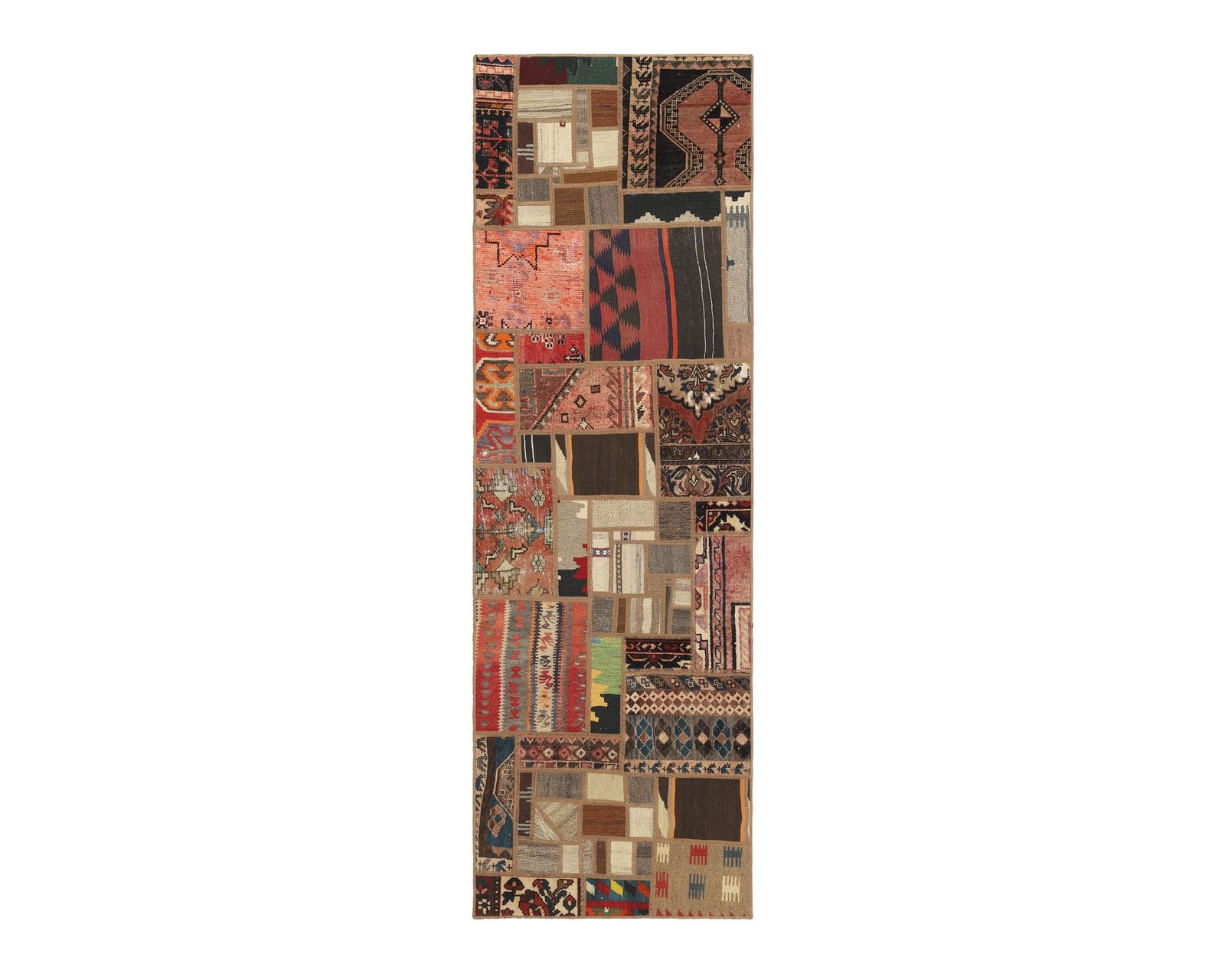 Tekkeh Kelim mattor tillverkas av bitar från gamla Kelim ullmattor. Bitarna sys ihop och slutligen fästs på ett bottenmaterial. Dessa mattor skapas alltså genom att återanvända befintligt material samtidigt som man skapar unika, lapptäckesliknande mattor av traditionella persiska textilier. Oanvänd.