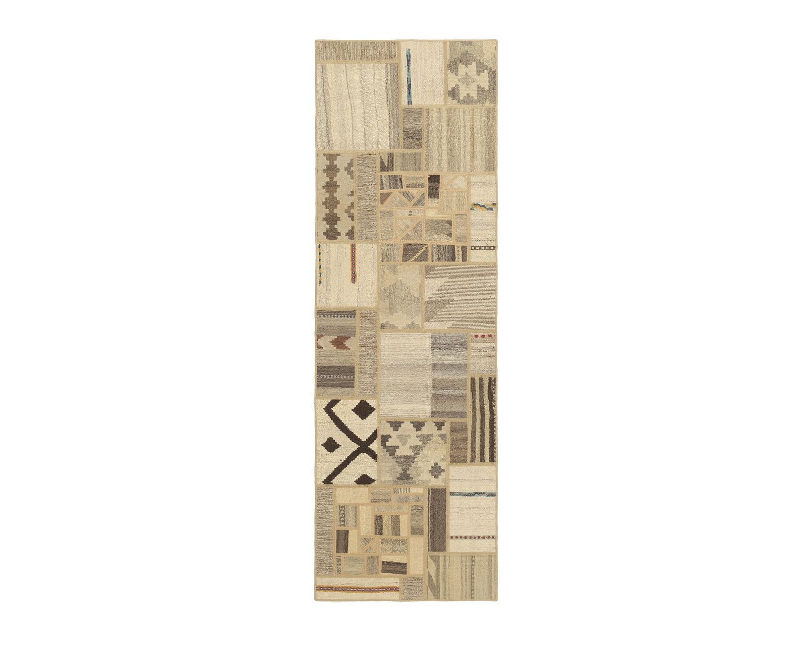 Tekkeh Kelim mattor tillverkas av bitar från gamla Kelim ullmattor. Bitarna sys ihop och slutligen fästs på ett bottenmaterial. Dessa mattor skapas alltså genom att återanvända befintligt material samtidigt som man skapar unika, lapptäckesliknande mattor av traditionella persiska textilier. Oanvänd.