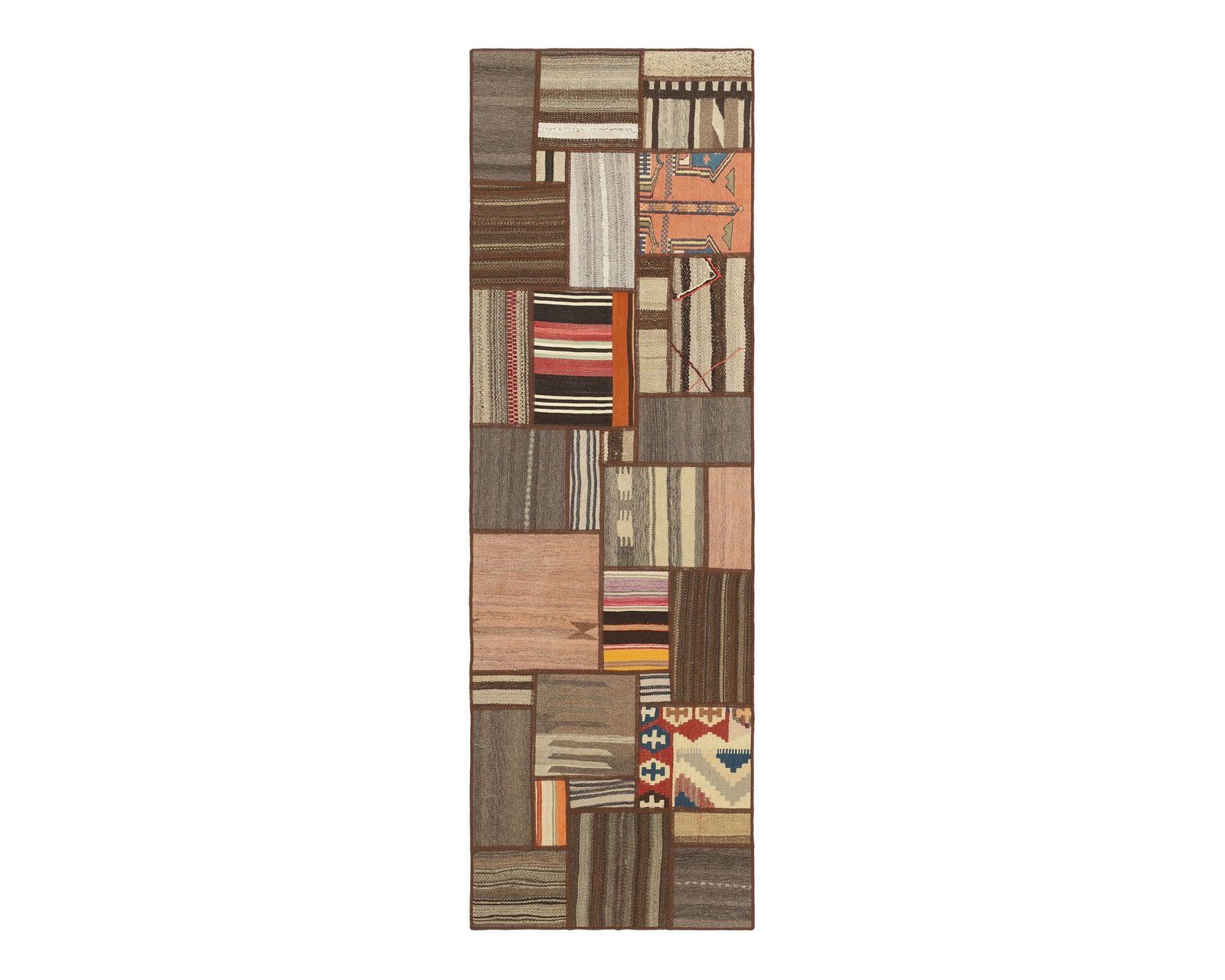 Tekkeh Kelim mattor tillverkas av bitar från gamla Kelim ullmattor. Bitarna sys ihop och slutligen fästs på ett bottenmaterial. Dessa mattor skapas alltså genom att återanvända befintligt material samtidigt som man skapar unika, lapptäckesliknande mattor av traditionella persiska textilier. Oanvänd.