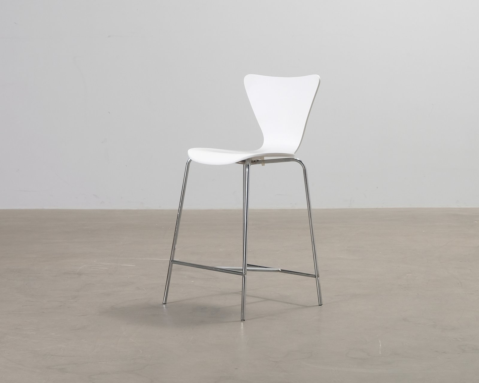 Stilren och tidlös barstol med bekväm sits. Den vita barstolen är lätt att kombinera med alla inredningar och passar perfekt till ett högt bord eller en köksö. Små bucklor, repor och slitage. Helhetsintrycket är bra.
