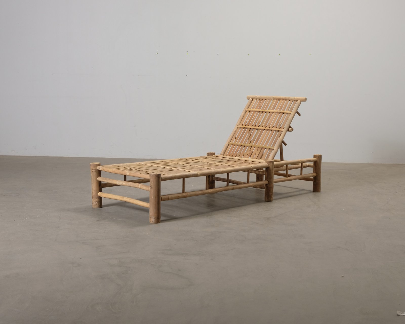 Den handgjorda solstolen i bambu från Tine K är det perfekta tillskottet till din terrass eller trädgård! Ett ben är sprucket och lossnat från en av ramens fogar.