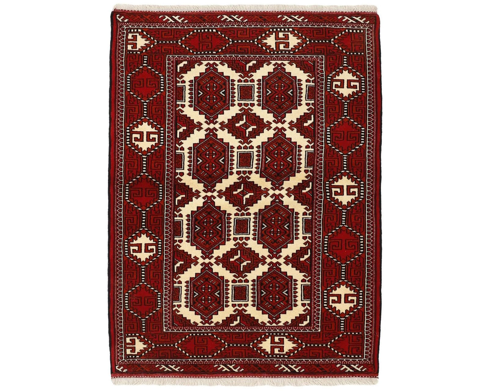 I Turkmenistan har nomadstammar specialiserat sig på att skapa Torkaman ullmattor. Dessa handknutna mattor med kort lugg är kända för sina breda kanter och en distinkt färgpalett där nyanser av rött, svart och naturvitt står i centrum. Dessa mattor är även smyckade med geometriska mönster som ofta symboliserar djur, växter och stjärnor. Bland de mest kända stilarna av Torkaman mattor finner vi Basjir, Salor, Tekke, Tjaudor och Yomut. Oanvänd.