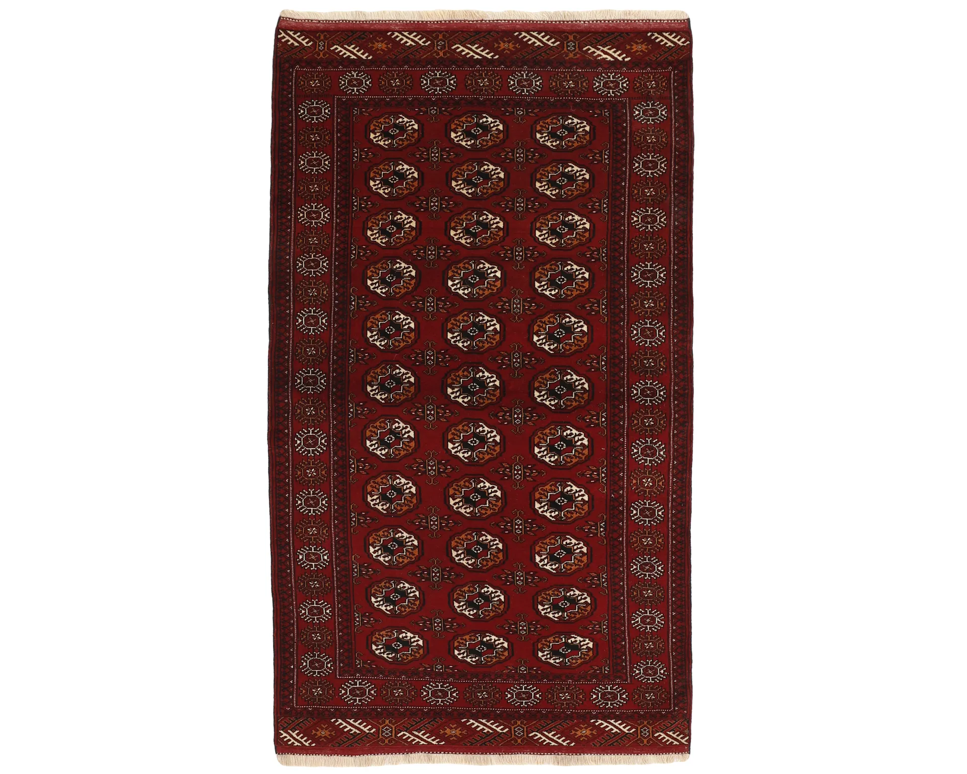 I Turkmenistan har nomadstammar specialiserat sig på att skapa Torkaman ullmattor. Dessa handknutna mattor med kort lugg är kända för sina breda kanter och en distinkt färgpalett där nyanser av rött, svart och naturvitt står i centrum. Dessa mattor är även smyckade med geometriska mönster som ofta symboliserar djur, växter och stjärnor. Bland de mest kända stilarna av Torkaman mattor finner vi Basjir, Salor, Tekke, Tjaudor och Yomut. Oanvänd.