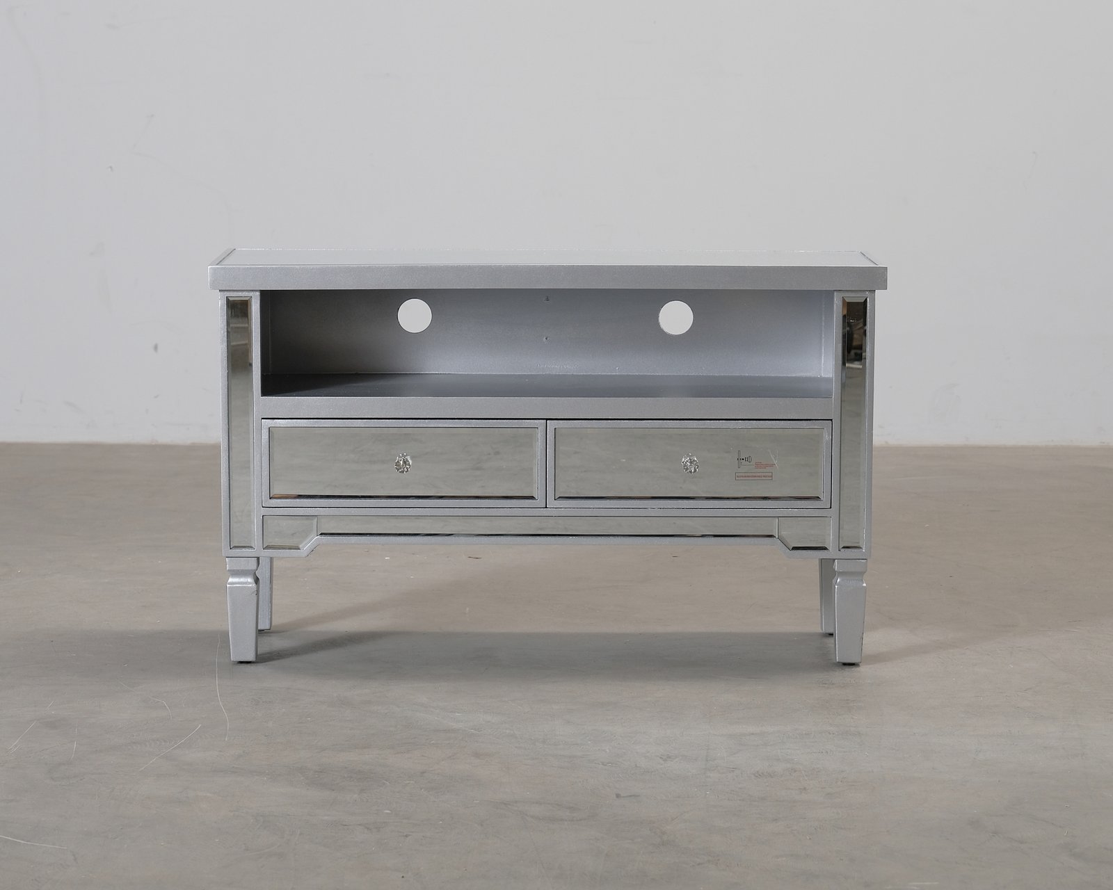 Detta kompakta TV-bord kombinerar klassiska inslag med modern design och skapar en personlig detalj i hemmet. TV-bordets två lådor erbjuder praktisk förvaring. Bucklor på ramen. Helhetsintrycket är bra.