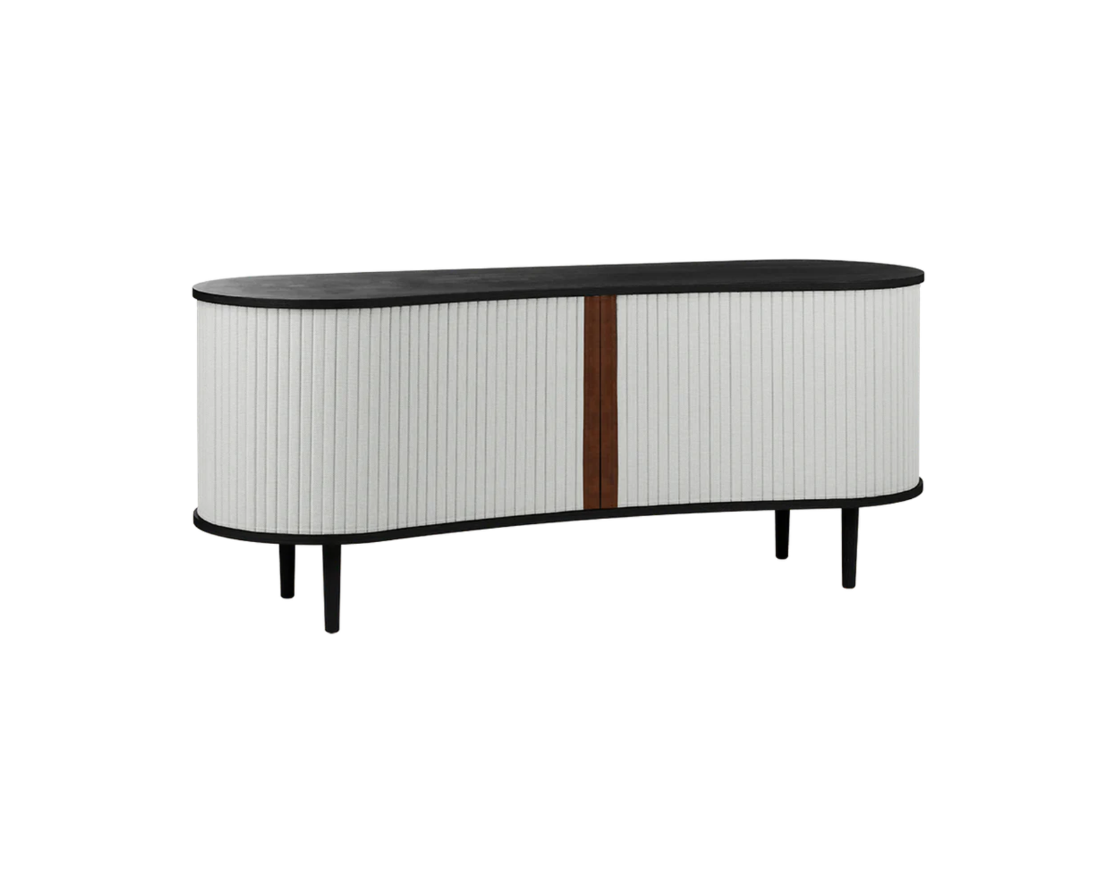 Umages tidlösa designklassiker får en andra chans hos Mjuk. Varorna är oanvända och skickas från Umages lager. Upptäck Umages hållbara möbler och lampor till en bråkdel av originalpriset. Audacious-skänken omtolkar klassiska förvaringslösningar med en känsla av diskret lyx och nordisk elegans. Den mjukt rundade, organiska siluetten kombineras med skjutbara tambourdörrar i tyg som tillför en modern nostalgisk karaktär och skapar en harmonisk balans mellan dåtid och nutid. Till skillnad från traditionella kantiga former ger Audacious-skänkens mjuka linjer liv åt rummet och skapar en varm och välkomnande atmosfär. Skänken är utrustad med justerbara hyllor samt smart placerade kabeluttag i både hyllplan och bakstycke, vilket gör det enkelt att dölja TV-utrustning och konsoler. De utbytbara tambourdörrarna gör det möjligt att förnya möbelns uttryck över tid utan att köpa en ny möbel, vilket förlänger designens livslängd och bidrar till ett mer hållbart val.