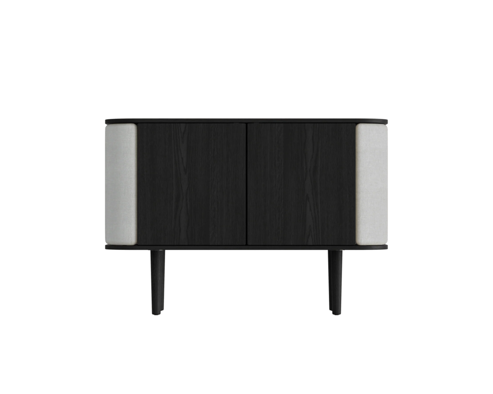 Umages tidlösa designklassiker får en andra chans hos Mjuk. Varorna är oanvända och skickas från Umages lager. Upptäck Umages hållbara möbler och lampor till en bråkdel av originalpriset. Treasures-skåpet är en anpassningsbar förvaringsmöbel med ett nordiskt uttryck där design och funktion möts. Skåpet är tillverkat i fanerad ek och de mjukt rundade sidorna är klädda med ett utbytbart material som ger en taktil och varm känsla. De vingliknande dörrarna öppnas elegant och rymmer förvaring för exempelvis finare drycker, böcker eller porslin, medan mittensektionerna med hyllplan passar perfekt för keramik och serveringsföremål. De utbytbara dörrarna gör det enkelt att själv byta klädsel och förnya skåpets uttryck utan att köpa en ny möbel, vilket bidrar till en mer hållbar design. Färg: Black Oak / Sterling.