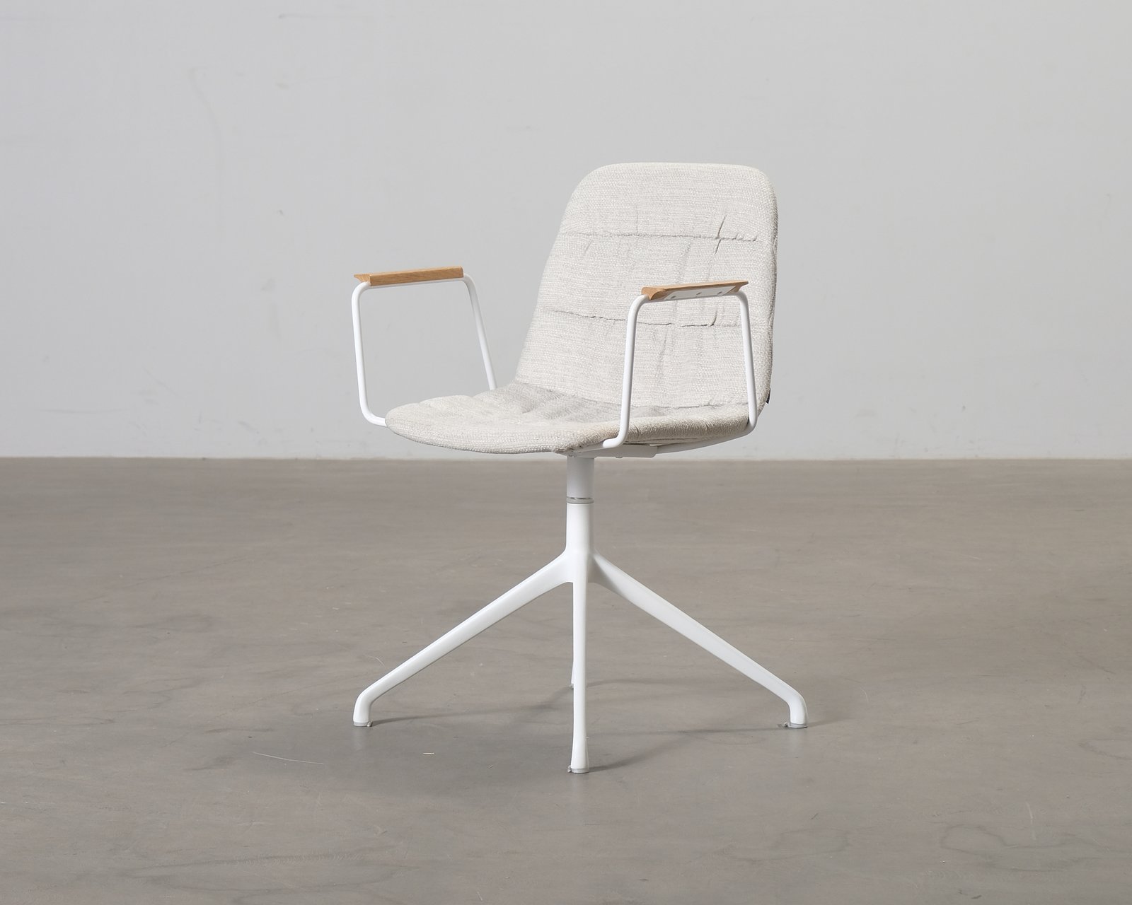 Viccarbe Maarten-stolen kombinerar andan i modern spansk design med influenser från 1970-talets design. Maarten-stolens skålformade sits är tillverkad av återvunnen polypropen och dess robusta stålben garanterar en stabil konstruktion. Denna eleganta, vridbara stol passar både för hemmabruk, till exempel vid ett skrivbord, och för kontor, hotell och andra offentliga miljöer. Lätt ludd på klädseln. Helhetsintrycket är bra.