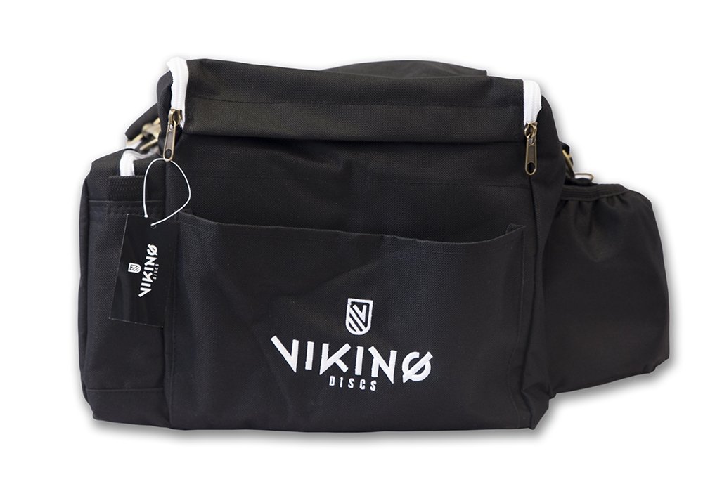 Viking Discs Cooler Sack XL diskväska Cooler Sack XL är det perfekta valet som första diskväska. I huvudfacket ryms det ca 13-16 diskar och dessutom finns det en egen ficka för puttern. I var dera ända finns det en värmeisolerande ficka för flaskor samt en annan likadan för vägkosten så de hålls svala även under sommaren. Väskan bär du praktiskt på axeln med de mjuka bärhandtagen. Funktioner Material: 600D polyester Mått Vikt: 650g Längd: 26 cm Bredd: 22 cm Höjd: 24 cm