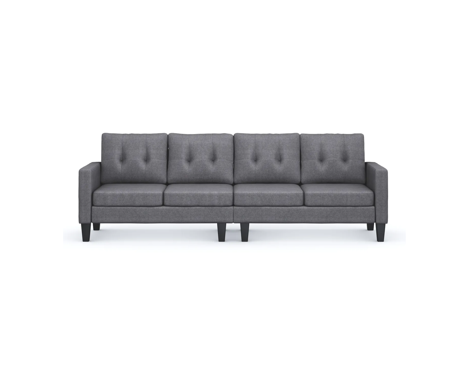 Vislanda är en tidlös och bekväm 4-sitssoffa med en grå tygklädsel som gör den enkel att kombinera med många olika inredningar. Ramen är tillverkad av MDF och benen av trä. Produkten är oanvänd.