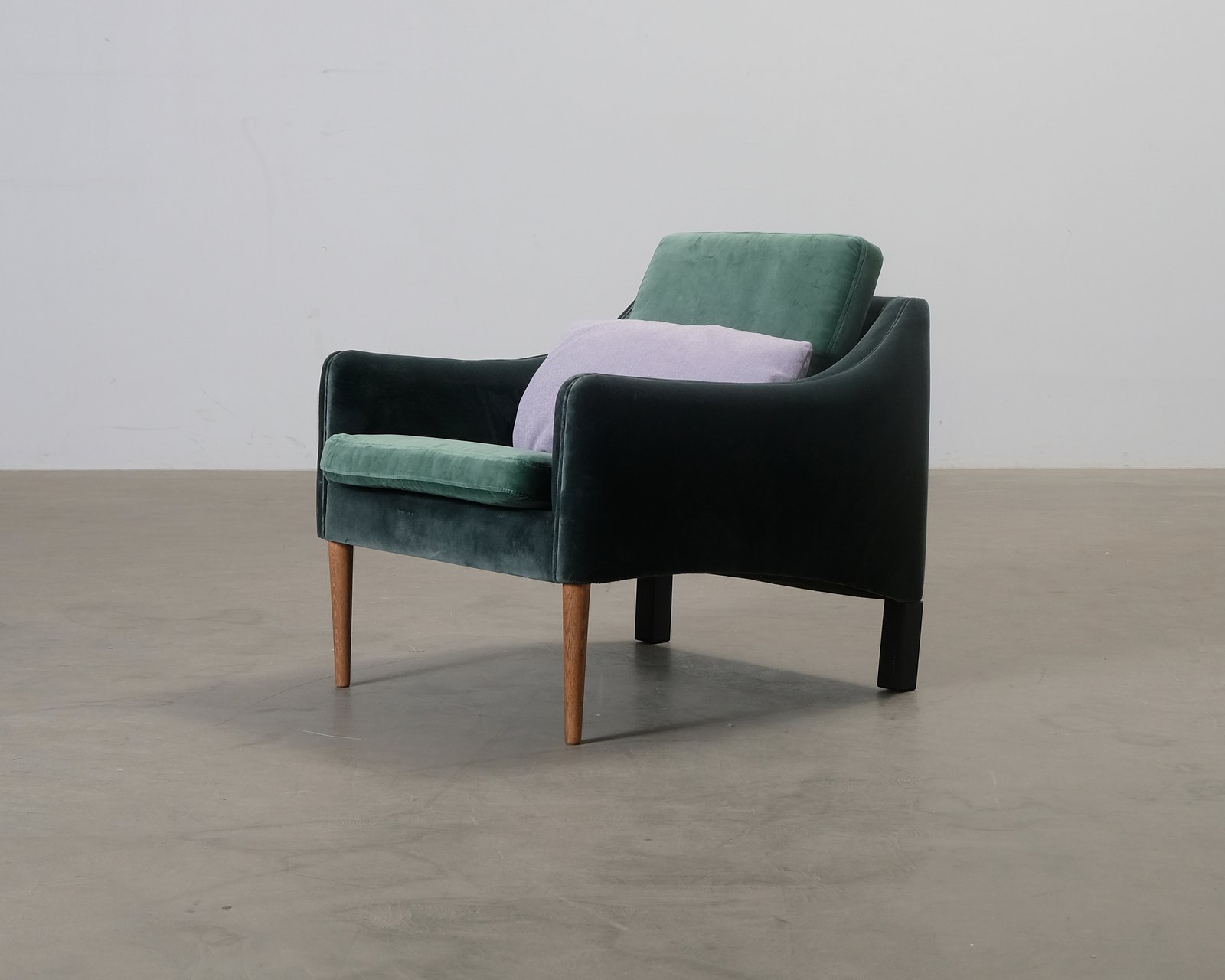 Mr Olsen-fåtöljen från Warm Nordic är en dansk designklassiker skapad av Hans Olsen 1958. Fåtöljen består av avsmalnande träben och en ram med böjda armstöd. Den vackra tygklädseln fulländar fåtöljens eleganta utseende. Mr Olsen utstrålar 1950-talets danska modernism och är en tidlös och bekväm fåtölj som passar perfekt i moderna interiörer. Klädsel: Ritz 0705. Bakbenen har bytts ut och extradynan är inte original. Helhetsintrycket är bra.