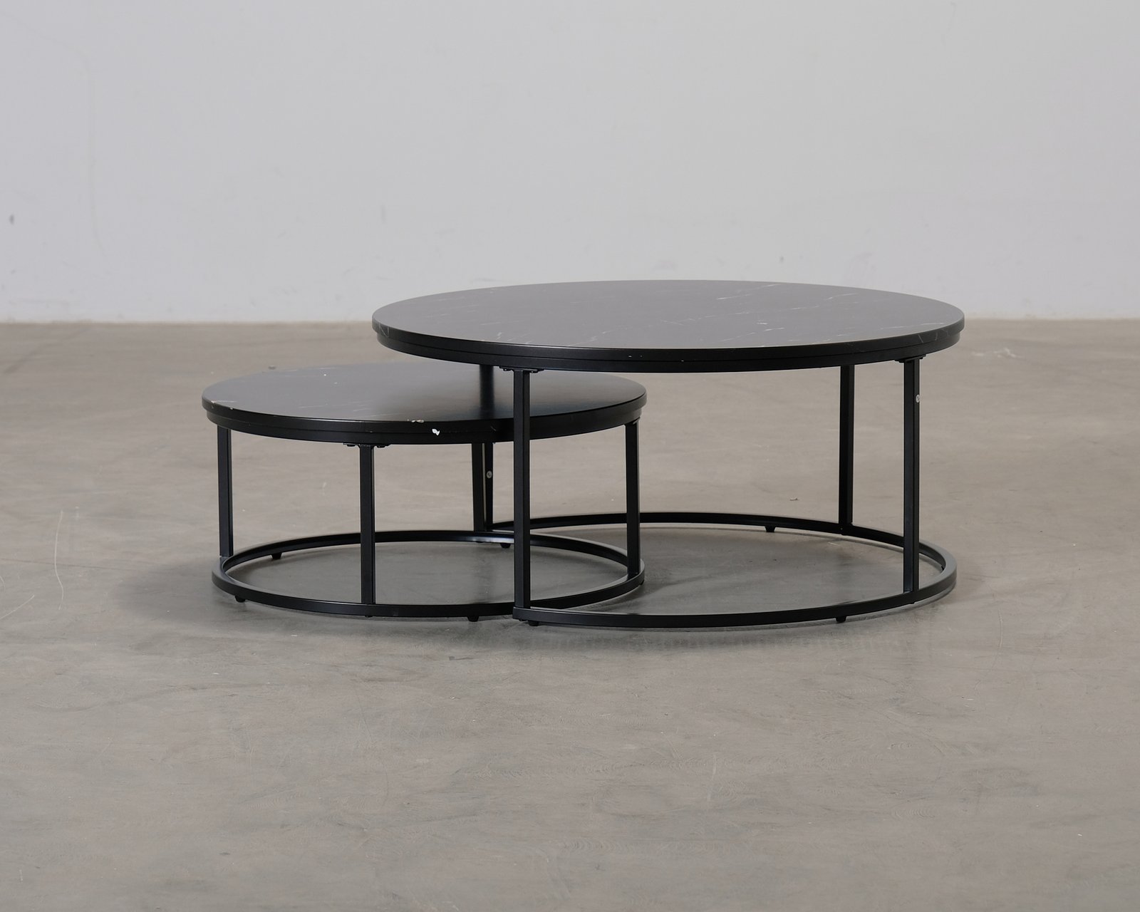 Tvådelat Wilhelm satsbord. Borden fungerar både tillsammans och som separata bord. Tillverkad i metall och MDF. Repor och bucklor. Helhetsintrycket är bra.