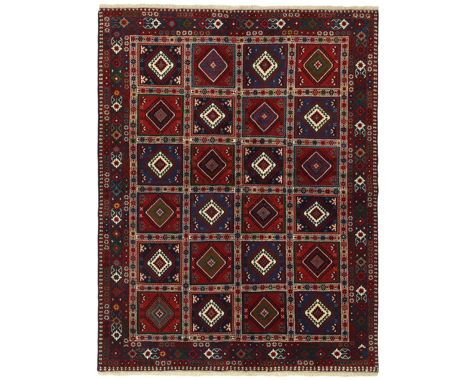 Yalameh-mattorna är handknutna ullmattor som kännetecknas av geometriska, tribala mönster i starka färger. Ullgarnet är maskinspunnet men har en mjuk lyster, och de traditionella motiven skapar en livfull, men samtidigt välstrukturerad yta. Knuttätheten ligger mellan 250 000 och 350 000 knutar per kvadratmeter. Oanvänd.
