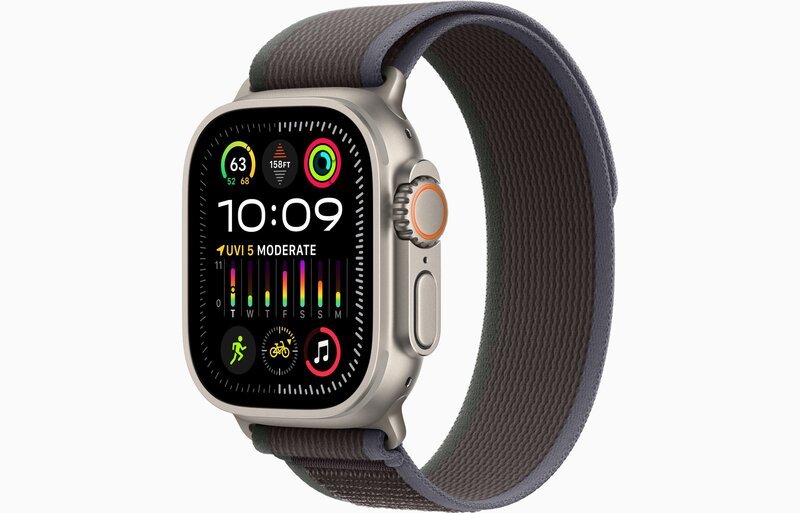 Apple Watch Ultra 2 GPS + Cellular, 49mm Titanium Case with Blue/Black Trail Loop – M/L MRF63UL/A