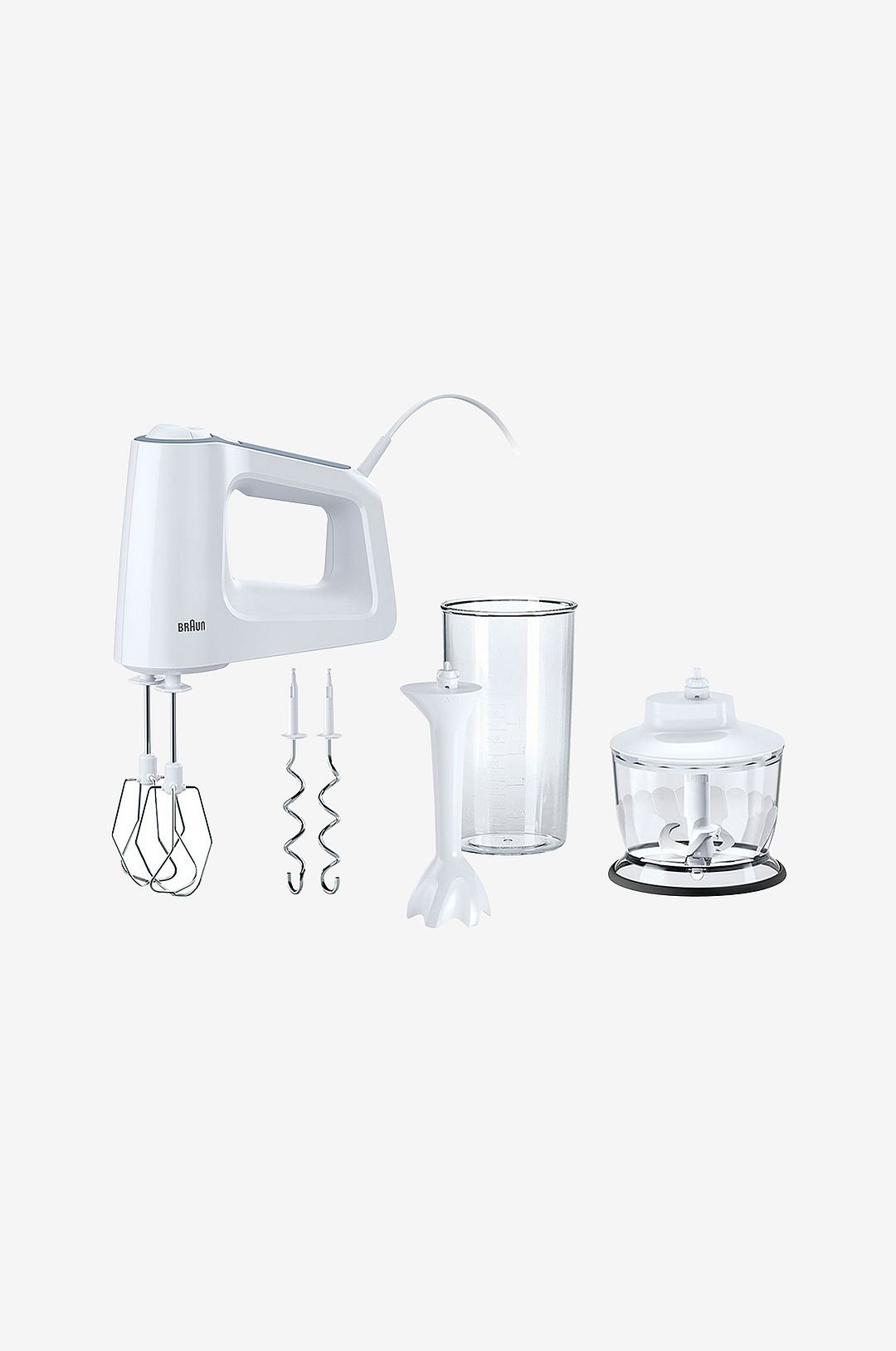 Monipuolinen MultiMix 3 -sähkövatkain tarjoaa ergonomista mukavuutta nopeaan ja helppoon ruoanlaittoon. SmartMiz-tekniikan ansiosta moottori, ja siten myös laitteen painopiste, on sijoitettu pystysuoraan lisätarvikkeiden yläpuolelle painon ohjaamiseksi alaspäin kohti kulhoa – ei kohti kättä. Koska moottori on suoraan lisätarvikkeiden ympärillä, laitteen paino suuntautuu alaspäin kohti kulhoa ja poispäin kädestä. Näin sekoittaminen on jopa 40% kevyempää. (*Kakkutaikinan sekoitus, Braunin sisäinen testi verrattuna johtaviin kilpailijoihin.) Fiksun muotoilun ansiosta kaikki lisätarvikkeet kiinnitetään sähkövatkaimen etuosaan, jolloin laitetta voidaan käyttää mukavasti samassa asennossa sekä sekoituksen, vatkauksen että levon aikana valitusta lisätarvikkeesta riippumatta. Laite pysyy tukevasti pystyssä kaikkien lisätarvikkeiden kanssa, jolloin työtaso pysyy puhtaana ja voit siirtyä keskeytyksettä seuraavaan työvaiheeseen. Vaihda lisätarvike helposti isoa painiketta painamalla. Säädä nopeussäädintä peukalolla matalasta nopeudesta turbonopeuteen saadaksesi paremman kontrollin ja tehon ruoanlaittoon. Luistamaton kahva takaa napakan, pehmeän ja hyvin pitävän otteen myös korkeinta nopeutta käytettäessä. Johto on aina mukavasti poispäin kädestä sekoitinta käyttäessäsi. SmartMix-tekniikan ansiosta sekoittaminen on jopa 40% vaivattomampaa. (*Kakkutaikinan sekoittaminen, Braunin sisäinen testi verrattuna johtaviin kilpailijoihin.) Edessä ComfortClick-järjestelmä lisätarvikkeiden kiinnittämiseksi. Nopeussäädöt: Viisi eri nopeutta + turbotila EasyClickp-painike lisätarvikkeille: Kyllä Nopeudensäätö: Pikavalintasäädin Kahva: Ergonominen soft grip plus Sekoittimen varren materiaali: Muovia Virtajohdon pituus: 1,25 m Teho: 500 Väri: Valkoinen/harmaa Näppärä johtoliitäntä Konepestävät osat BPA:ta sisältämättömät, ruoan kanssa kosketuksessa olevat osat 600 ml:n kulho 2 vatkainta ruostumatonta terästä 2 taikinakoukkua ruostumatonta terästä PowerBell -sauvasekoitinosa Silppurilisätarvike, 500 ml