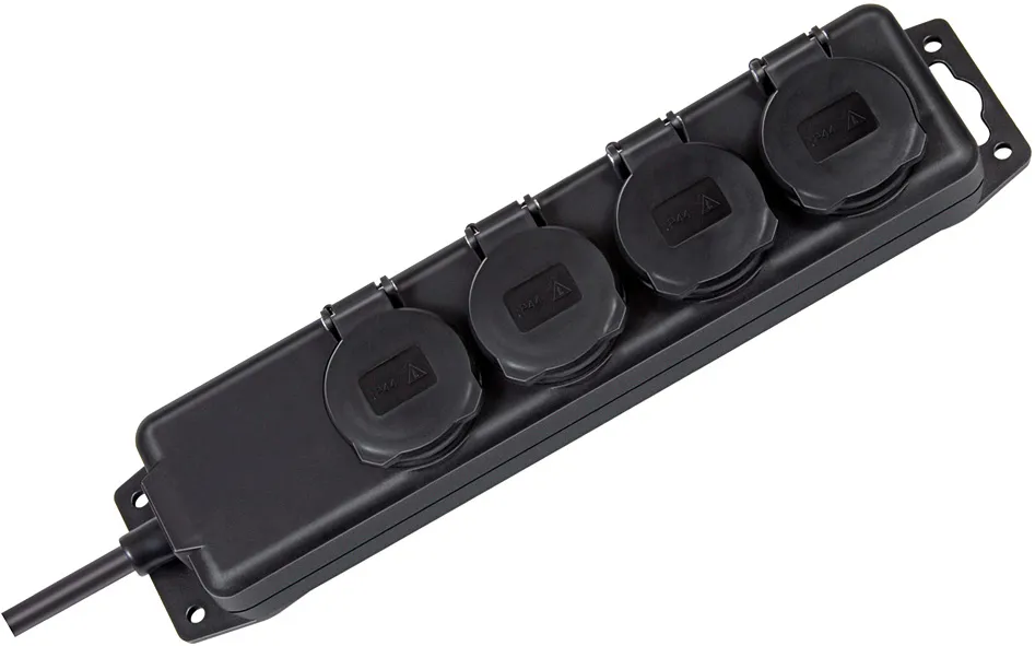 Brennenstuhl kaapelikerä, jossa 4xCEE 7/4 pistoketta, 1xCEE 7/7 liitin, IP 44, 2m kaapeli, musta