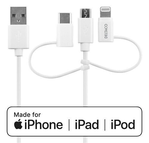 Deltaco C189, USB-A – USB-C/Micro USB/Lightning, 1 m