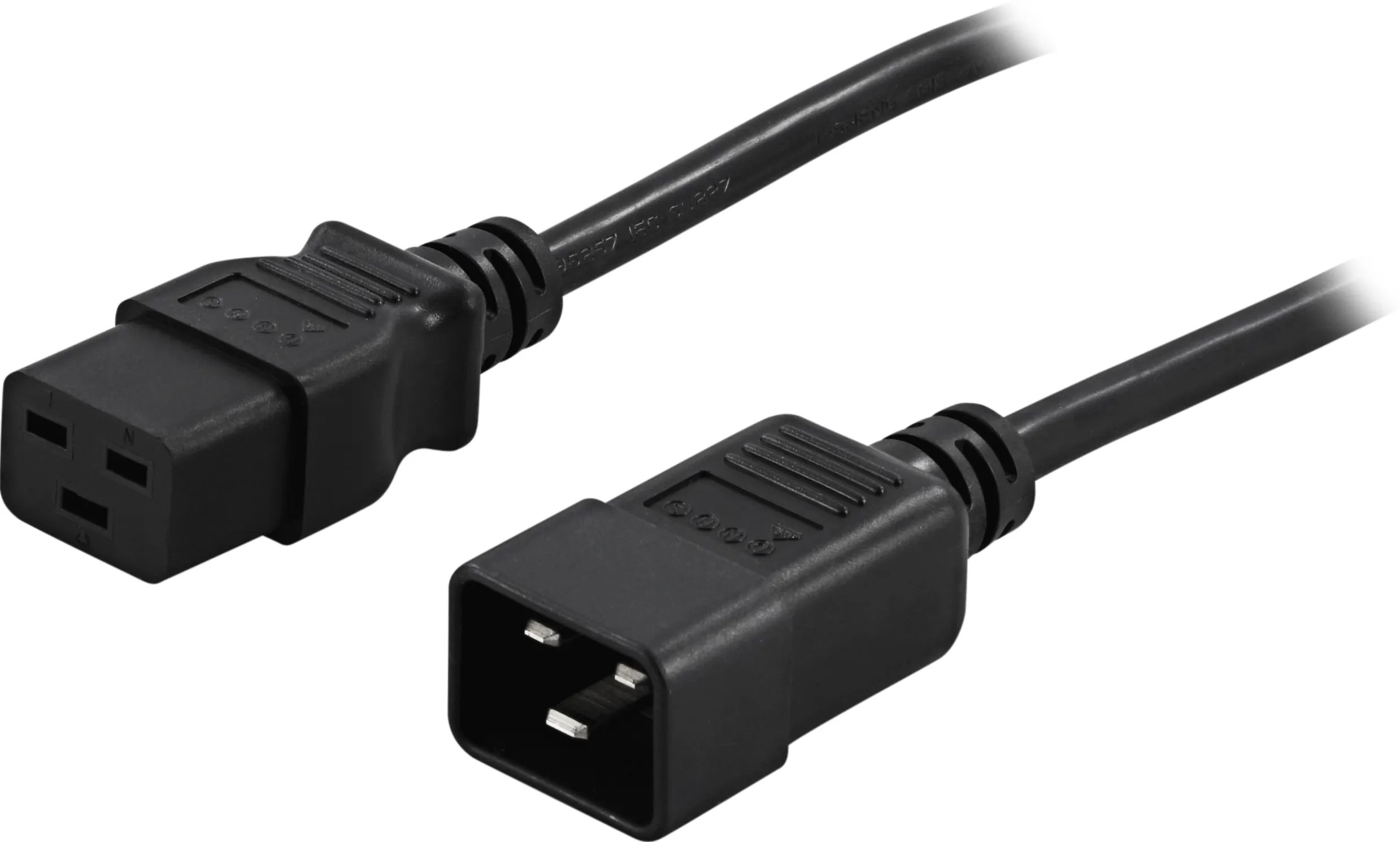Maadoitettu laite-/jatkokaapeli, suora IEC 60320 C19 – suora IEC 60320 C20, max 250V/16A, 1m, musta