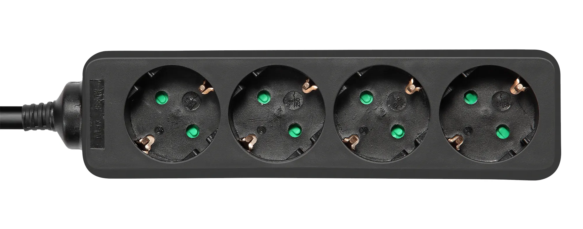 Deltaco pistorasia 4xCEE 7/3 1xCEE 7/7 jatkojohto 5m, musta