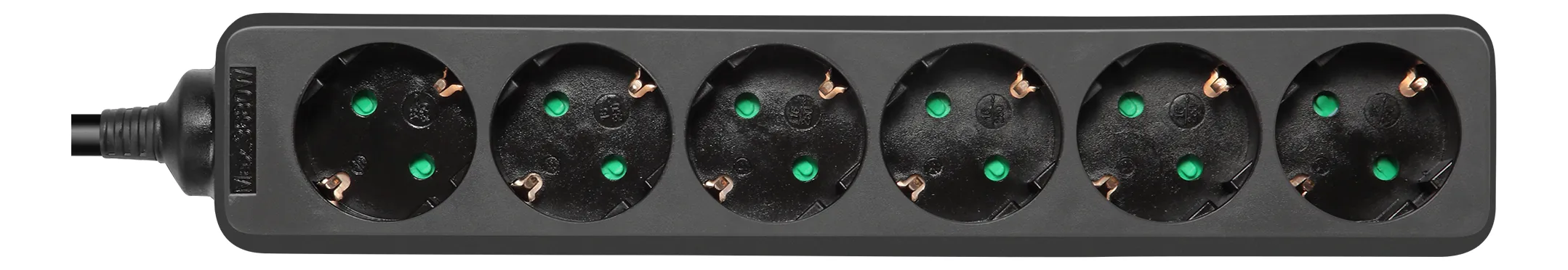 Deltaco pistorasia 6xCEE 7/3 1xCEE 7/7 jatkojohto 5m, musta