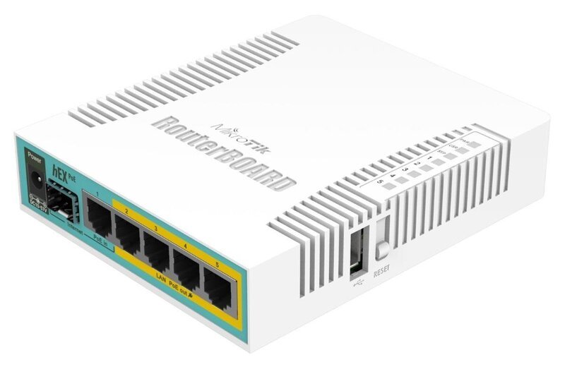 MikroTik hEX PoE reititin, 5x RJ45, 1x SFP, 1x USB